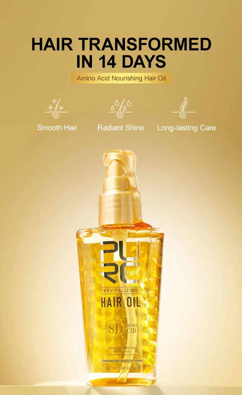 The PURC Morocco Argan Oil Nourishing Hair Oil is a game-changing hair care product designed to smooth, hydrate, and repair dry, frizzy hair. With keratin, natural oils, and vitamins, it gives your hair the care it deserves. Whether you're looking to achieve a frizz-free finish, restore damage, or simply hydrate your hair, this hair serum is the perfect solution for healthy, shiny hair.
