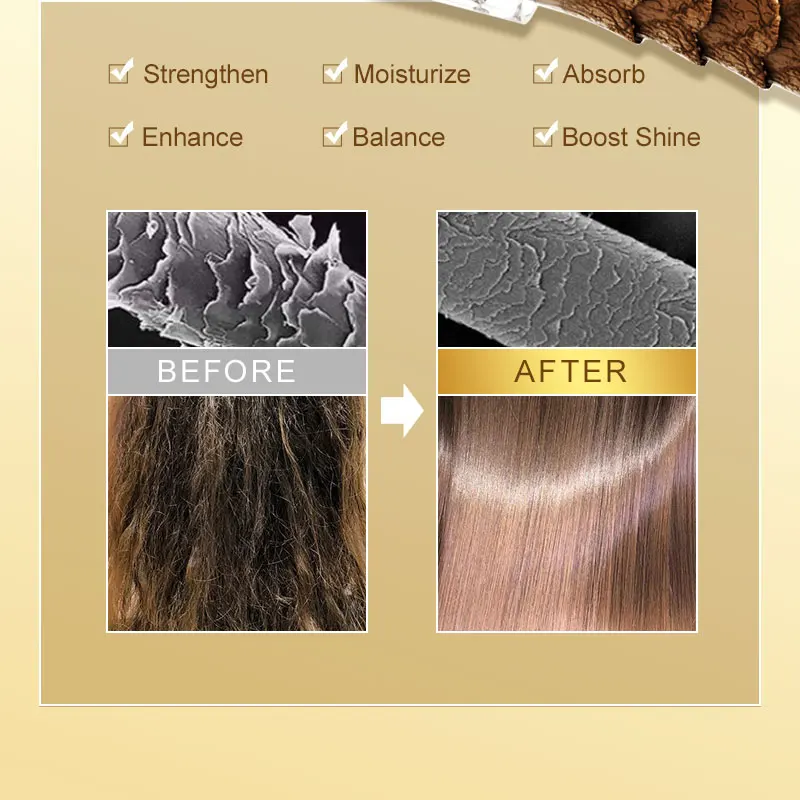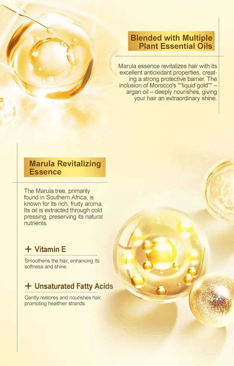 Argan + Marula + Camellia oils fuse to rebuild broken keratin bonds with 89% less split ends in 3 weeks