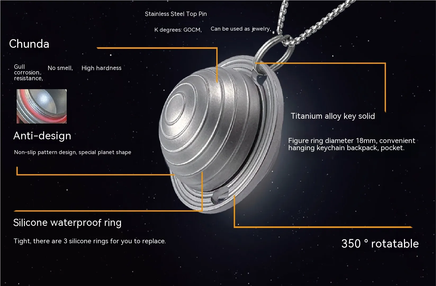 Pure Titanium Planet Sealed Small Keychain Medicine Box Bottle Waterproof Bin Can