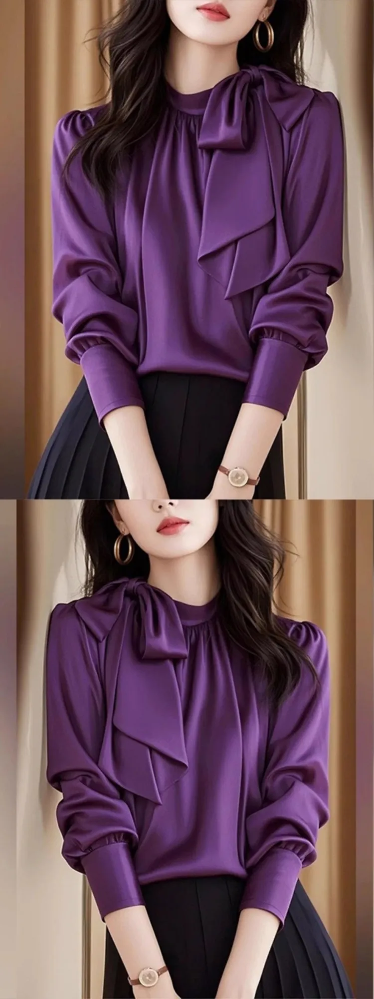 Purple tops come in various cuts and fits, including loose, relaxed fits, tailored designs, and cropped styles. This ensures that you can