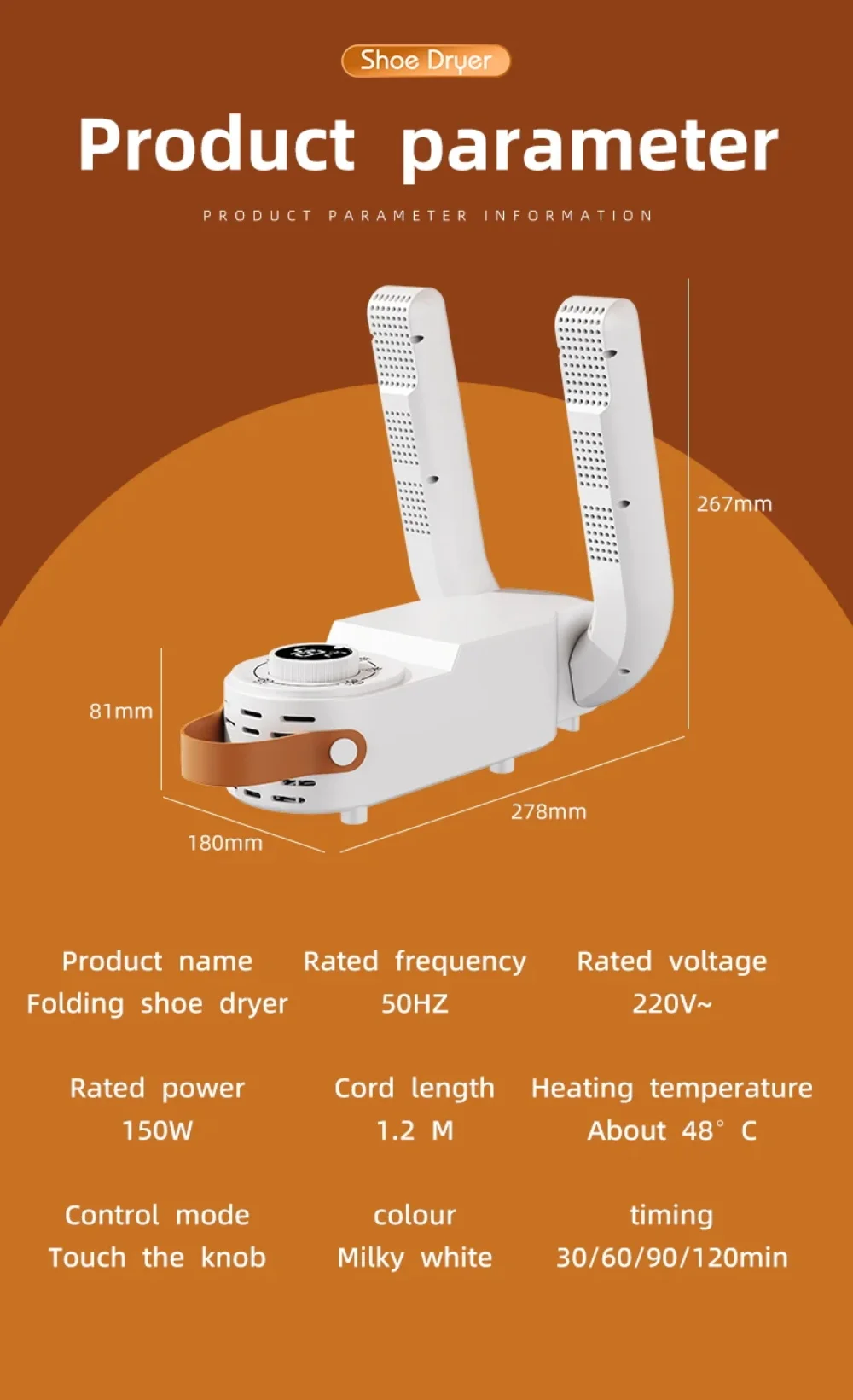 *The 48 degrees marked on the product indicate that the constant temperature of the dryer during normal operation is 48 degrees, not the temperature displayed on the digital monitor. The product plug is in accordance with European standards, rated voltage: 220 (V), rated power: 150 (W), rated frequency: 50 (Hz), 2.5 (A)