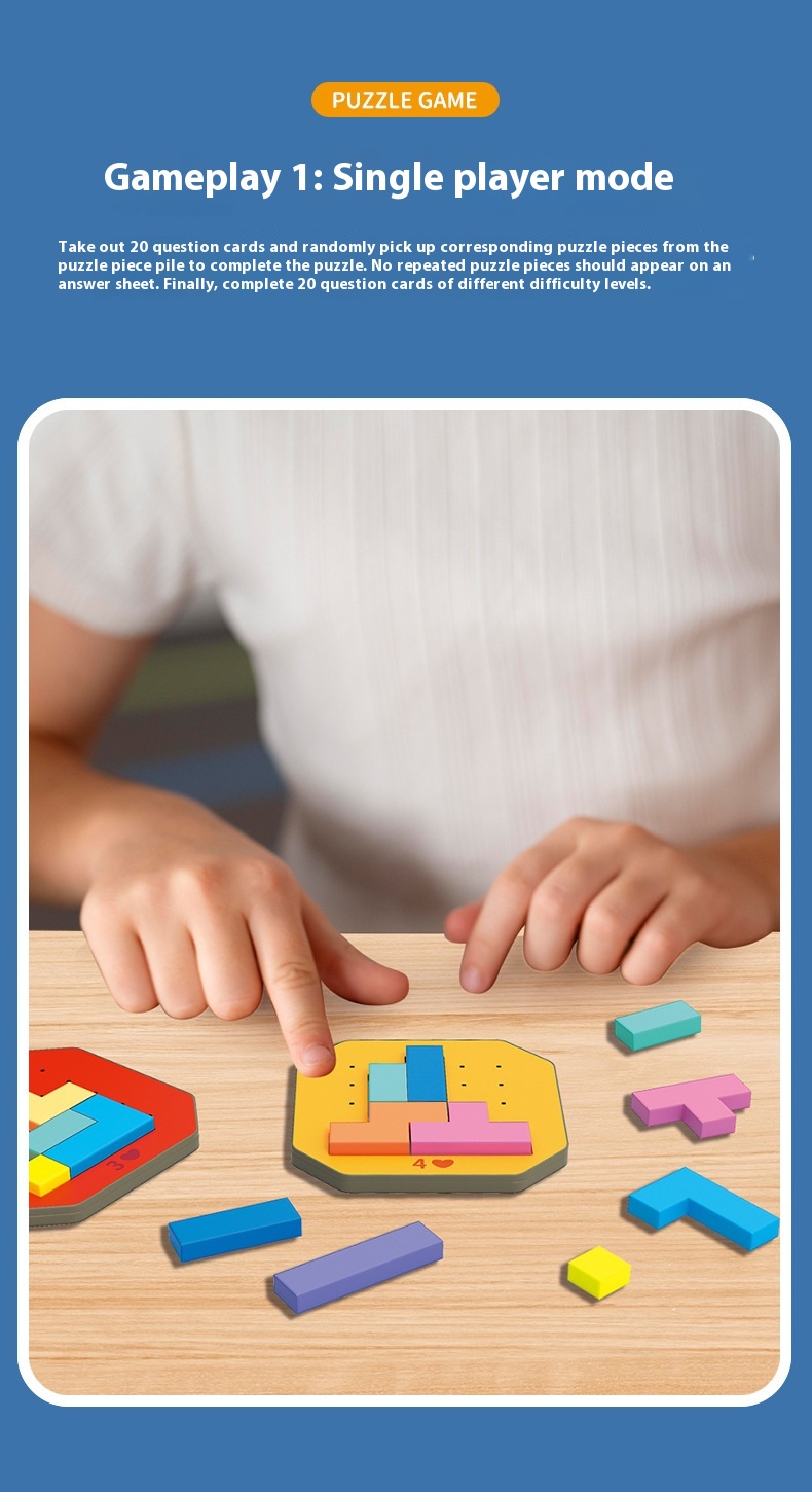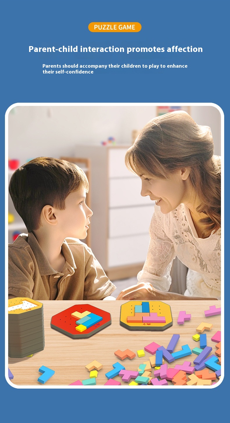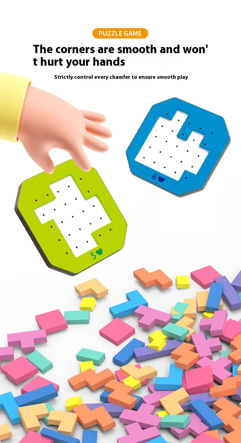 - Puzzle: Tetris puzzle Tangrams made of wood promotes children's coarse and fine motor skills, hand-eye coordination, proportion, patience, concentration, calculation and analytical skills.