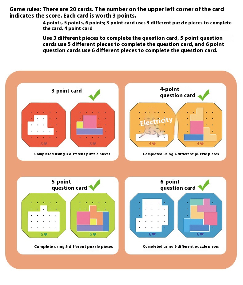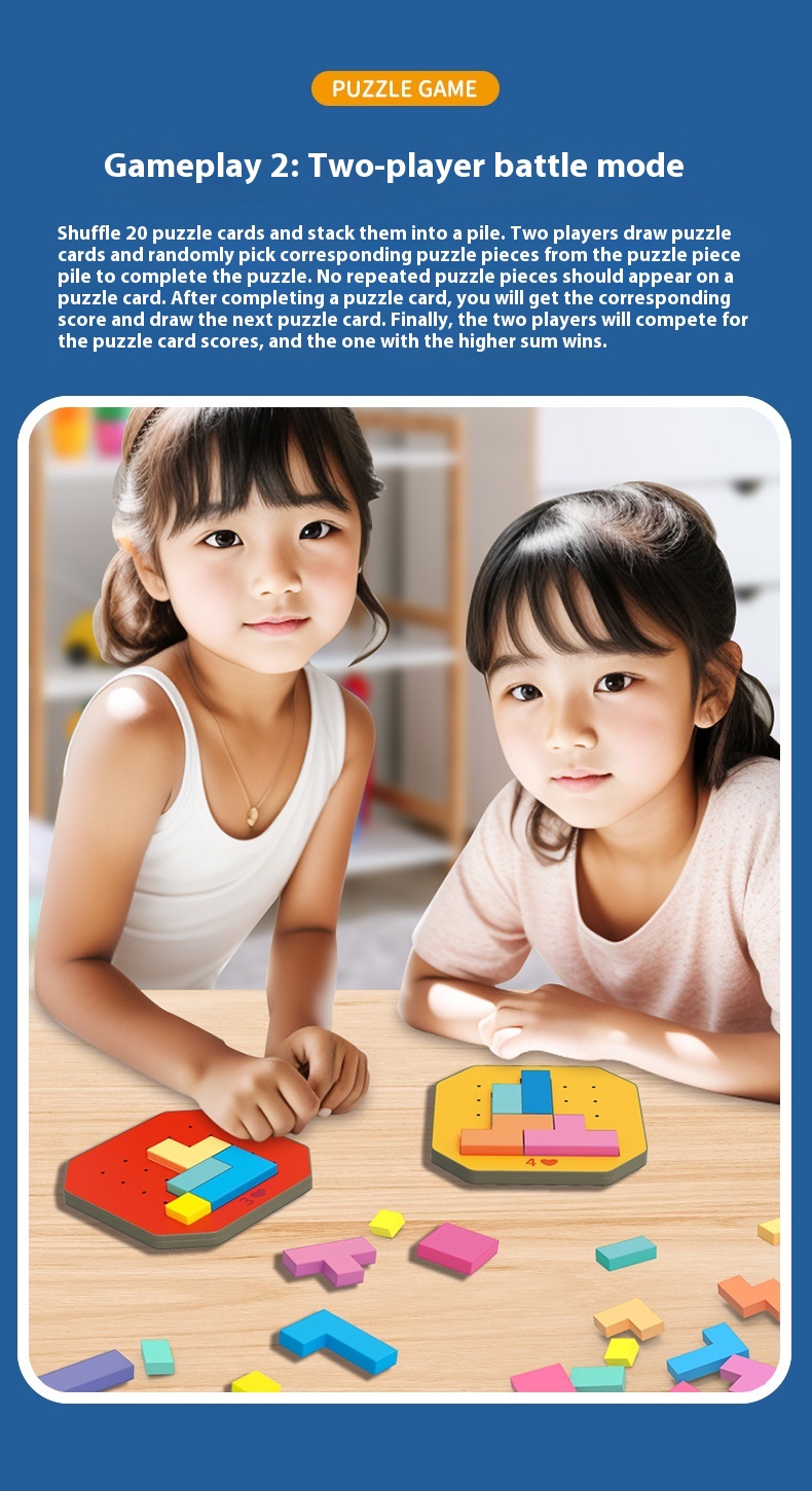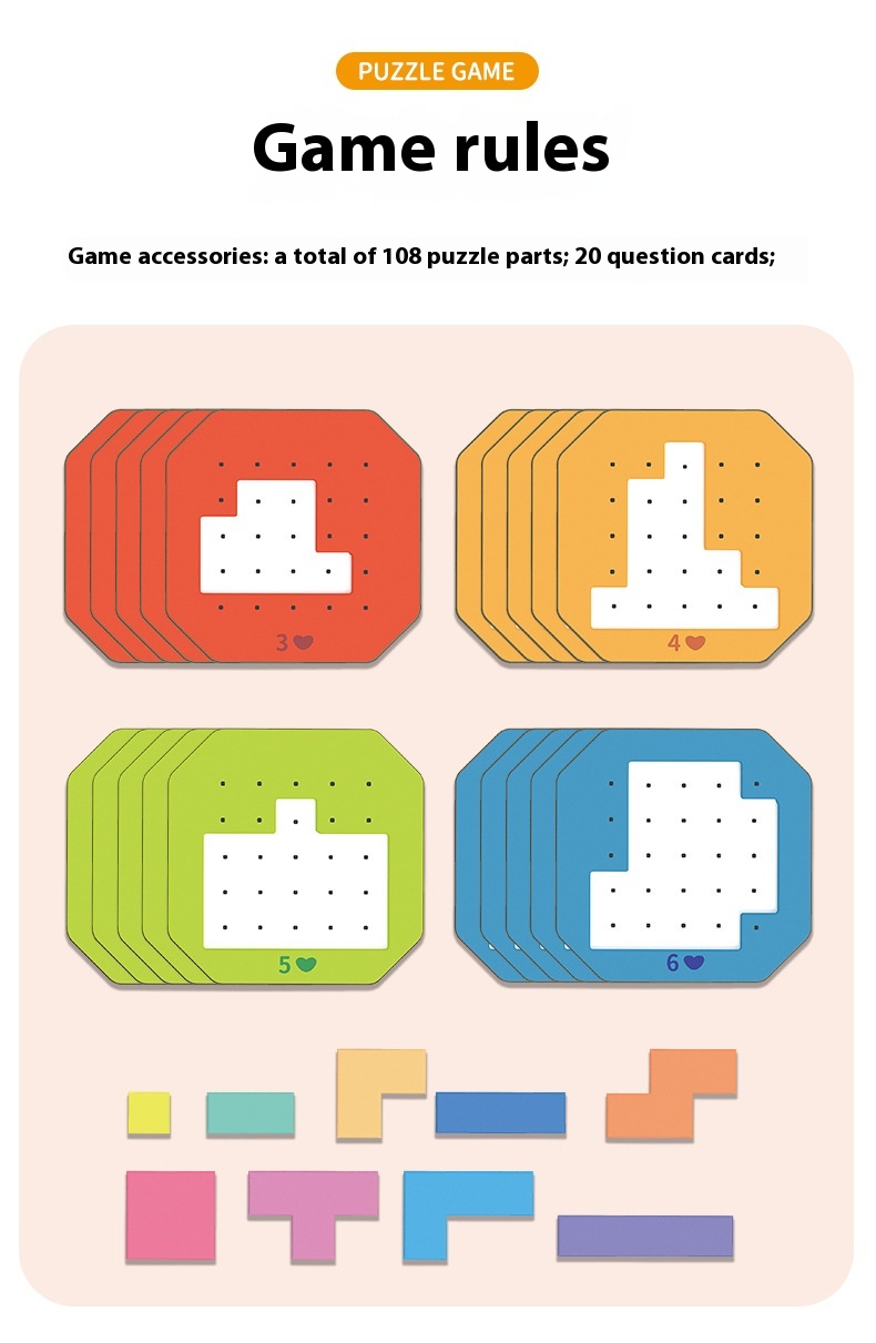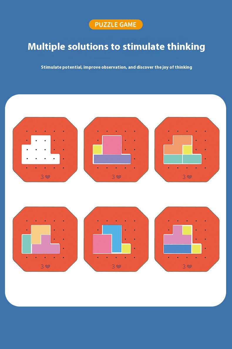 - Puzzle: Tetris puzzle Tangrams made of wood promotes children's coarse and fine motor skills, hand-eye coordination, proportion, patience, concentration, calculation and analytical skills.