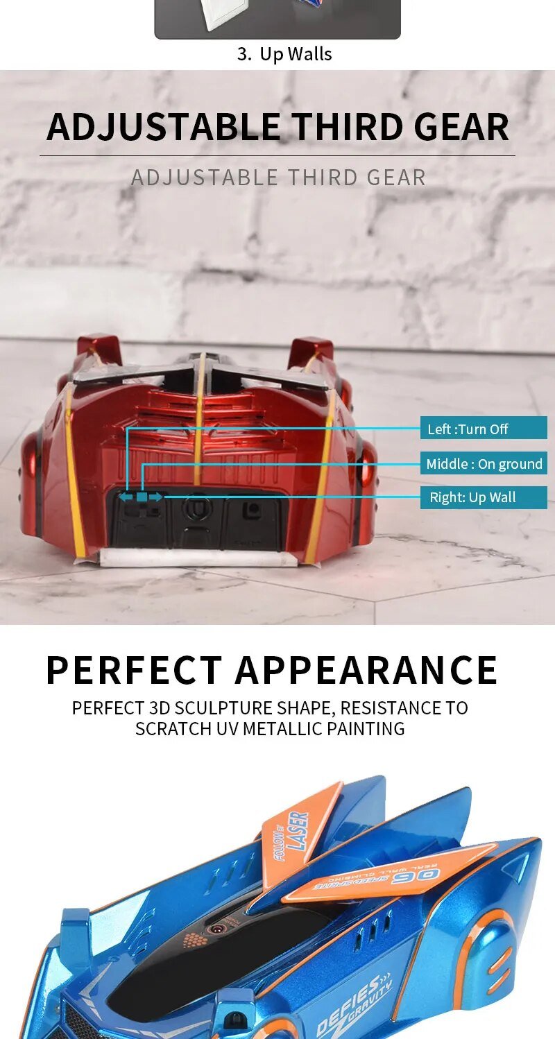 the light in any direction!This lightweight, wall climbing vehicle is fun and easy to control for any racer! With multi-direction control,