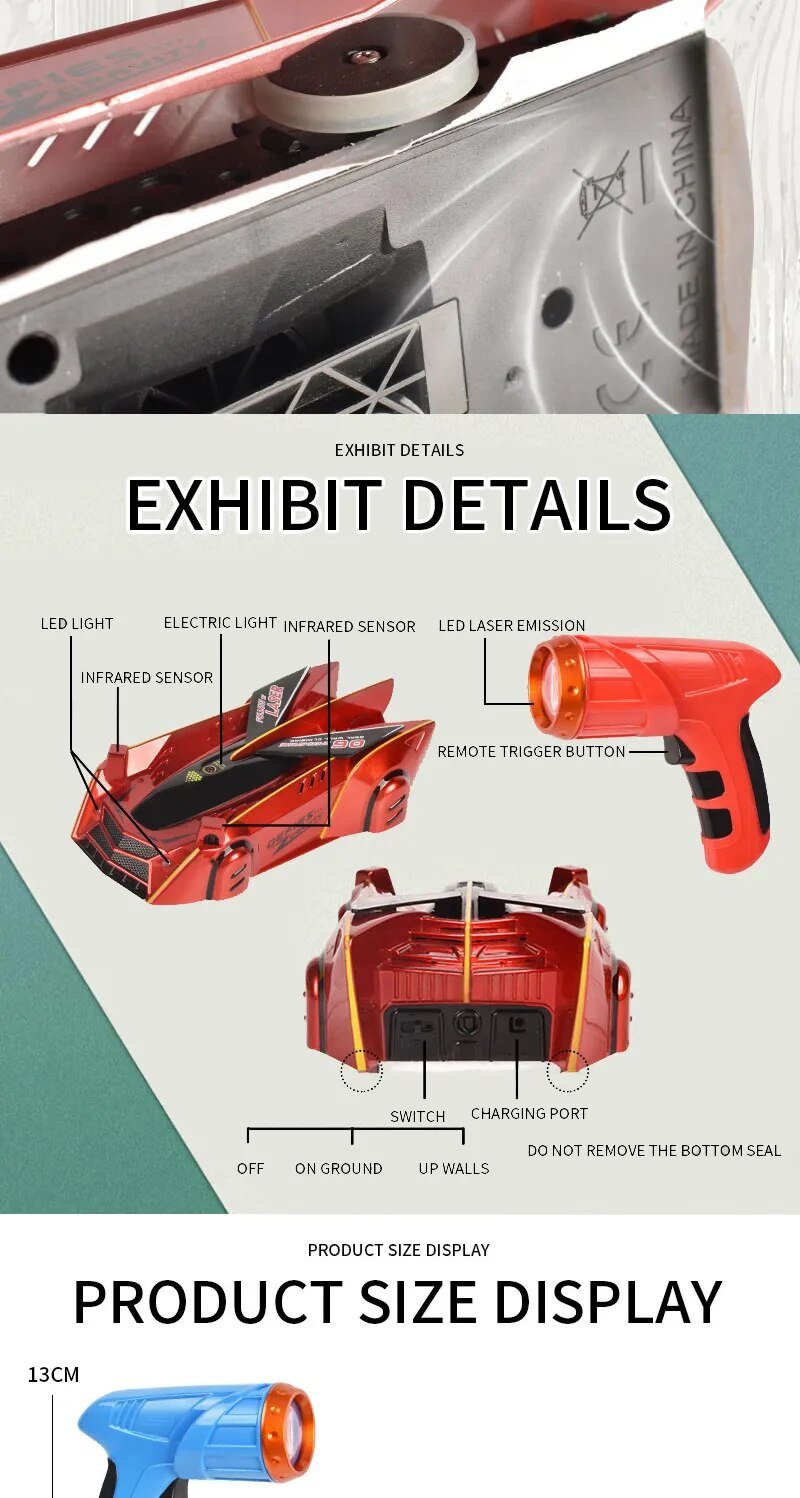 R C Car Rechargeable 360Rotating Laser Guided Wall Climber For Floor