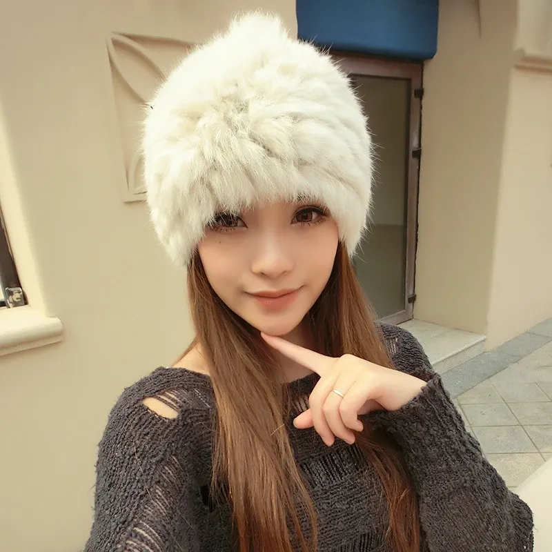Rabbit fur ball fur hat