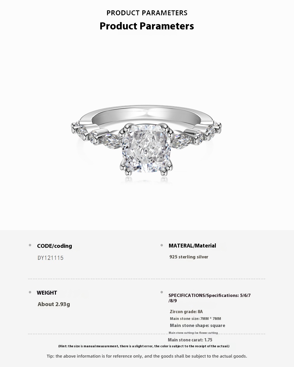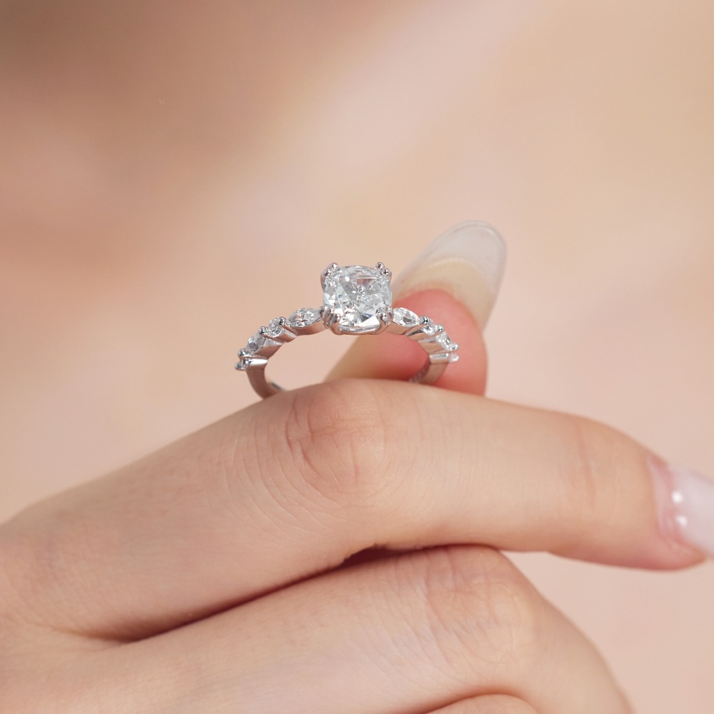 - Timeless Beauty: The combination of the cushion cut diamond and the sterling silver band creates a timeless piece that complements any outfit, from casual to formal. Whether you're dressing up for a special occasion or adding a touch of elegance to your everyday look, this ring is sure to make a statement.