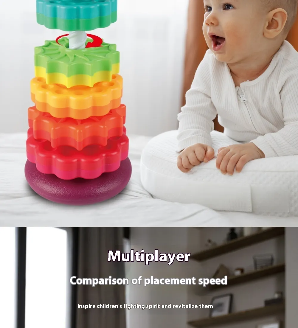 Rainbow Rotating Tower Toy Baby Early Education Intellectual Development Intelligence Ferrule