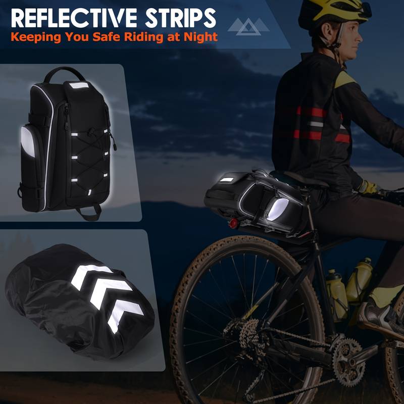 Versatile Design: Can be used as a bicycle trunk bag, backpack, or shoulder bag with adjustable straps for added