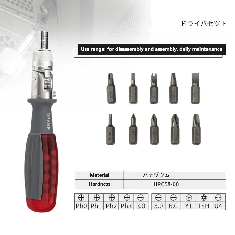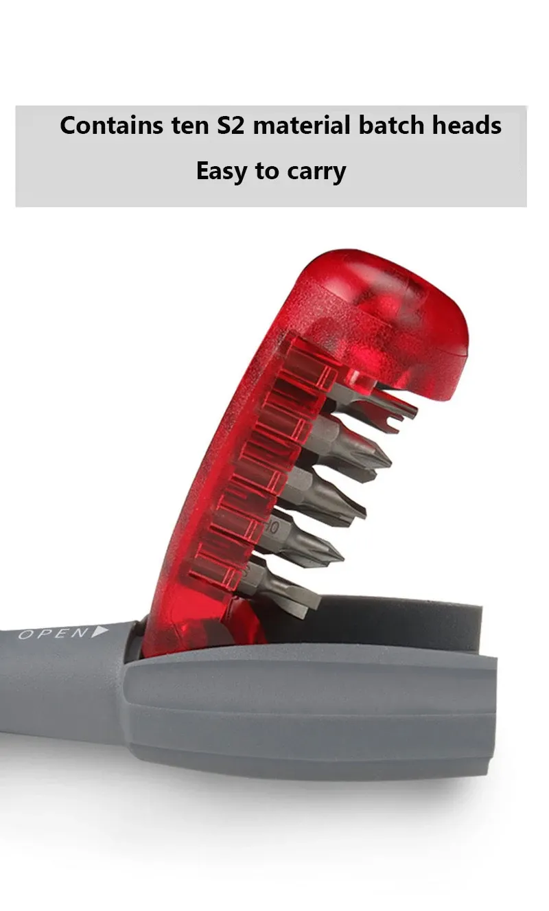 - 【Humanized Design】Our ratchet screwdriver has been professionally designed to enhance your repair capabilities. The cushion grip screwdriver handle delivers superb comfort, slip resistant and maximum torque and conveniently stores 12 bits. Magnetic bit holder ensures speedy and secure bit changes