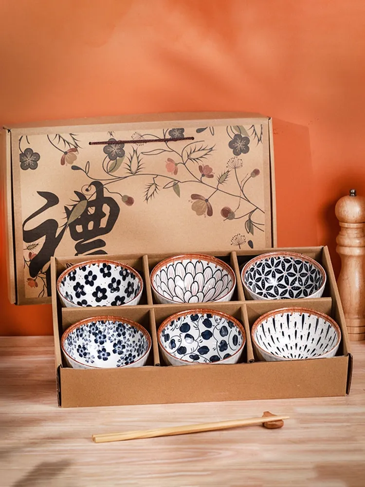 - 6 Bowls + Rattan Gift Box with Chopsticks