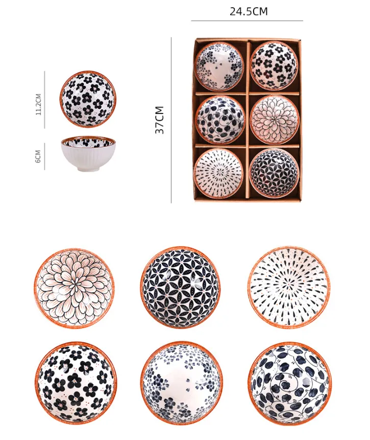 Color: 4.5 inches 6 bowls mixed [gift box]