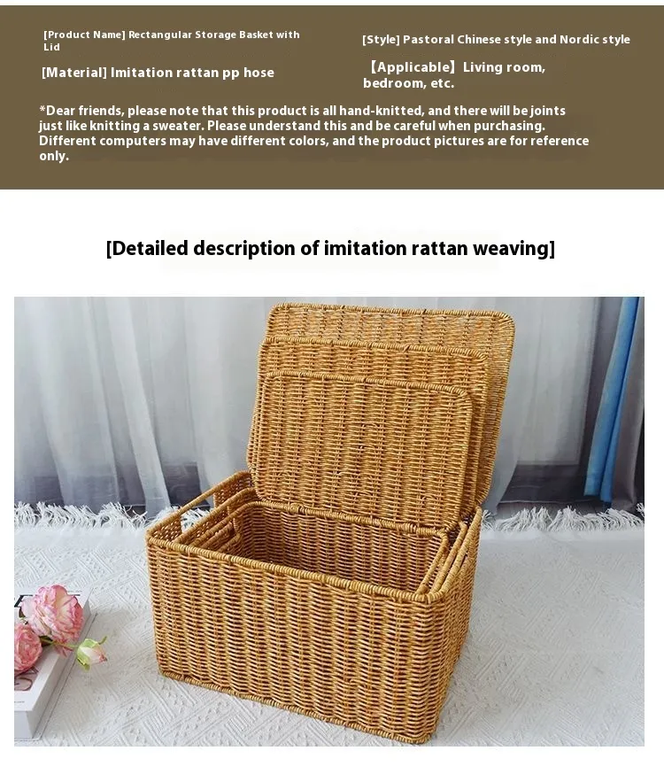 The Rattan Storage Basket Finishing With Lid offers ample storage space, allowing you to store a wide range of items. Use it to organize clothes, linens, books, toys, or household essentials. Its generous size makes it ideal for decluttering your home, and its sleek design allows it to fit seamlessly into various spaces, whether tucked under a coffee table, placed in a closet, or stored on a shelf.