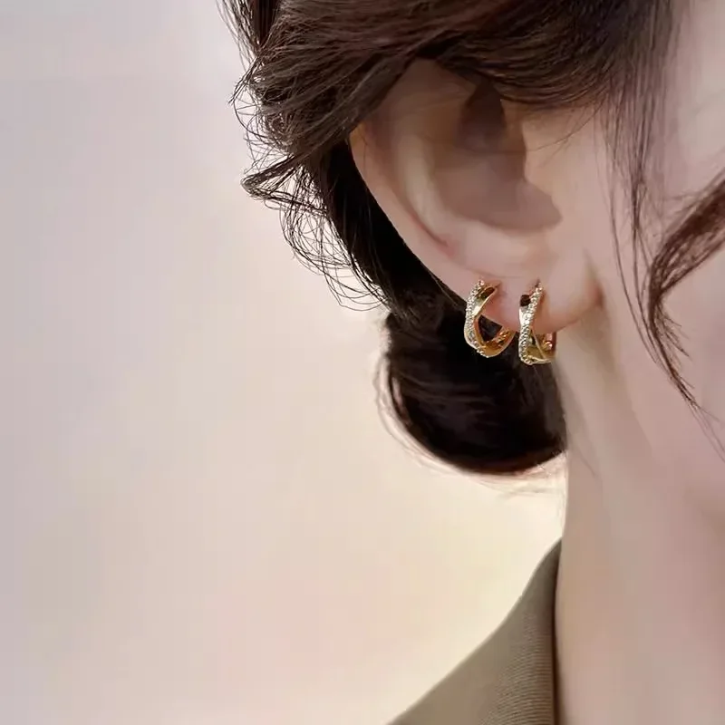 The earrings feature zircon stones that add a subtle sparkle and shimmer. Zircon is a natural gemstone known for its brilliance and clarity, and the stones used in these earrings enhance their luxurious feel. The zircon stones are carefully set to ensure a secure fit, adding an extra touch of elegance to the minimalist design.