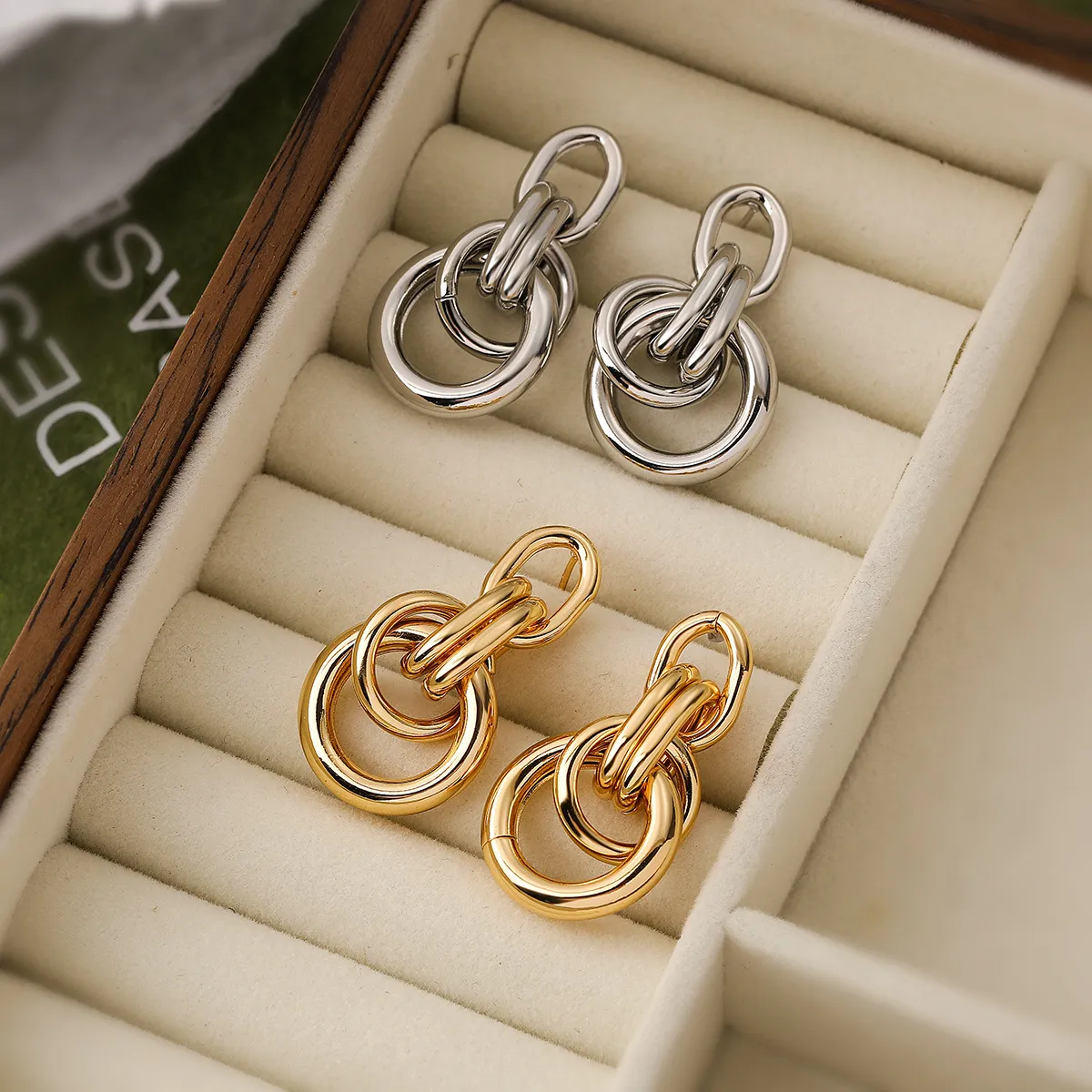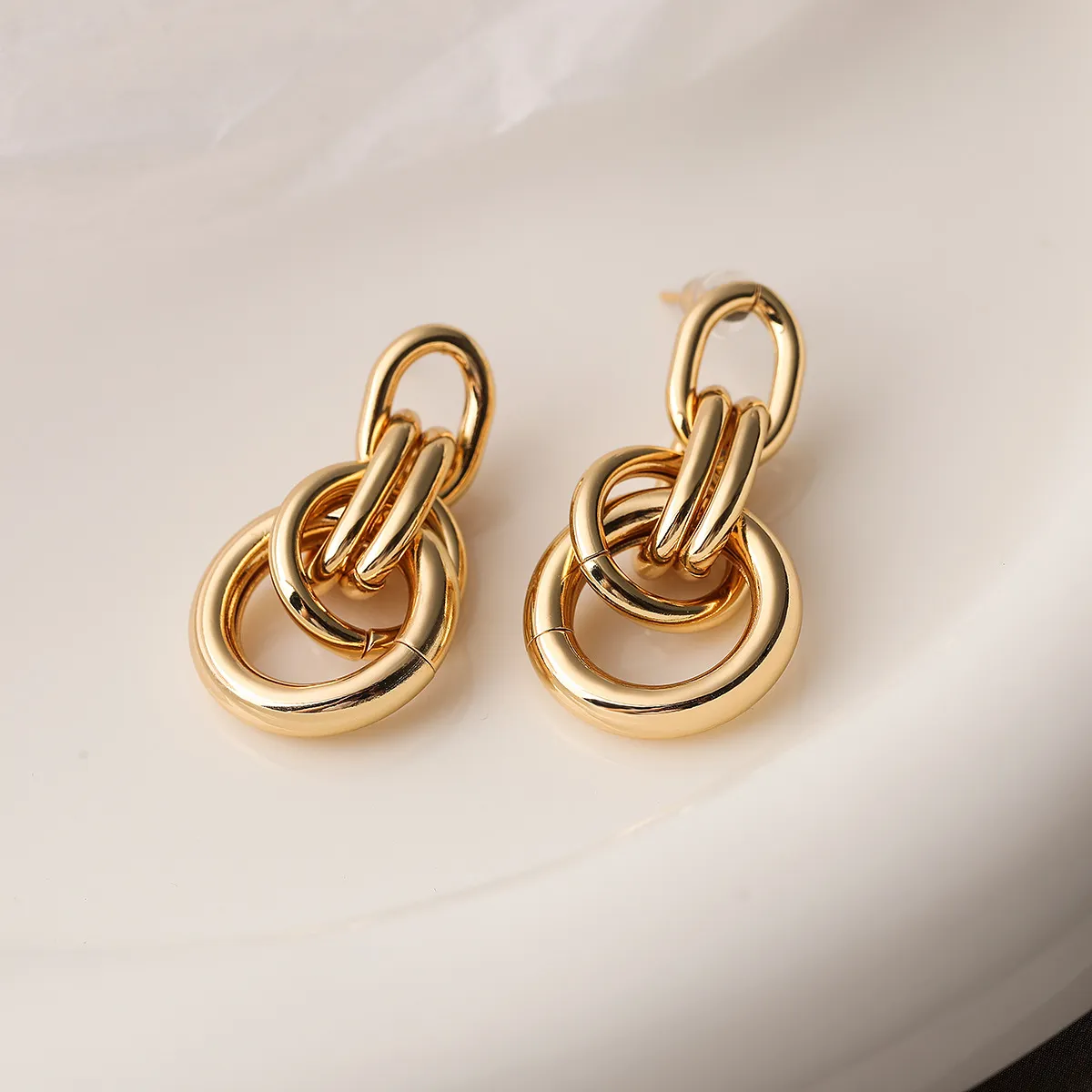 Real Gold Geometric Earrings – INS High-profile Wild Style