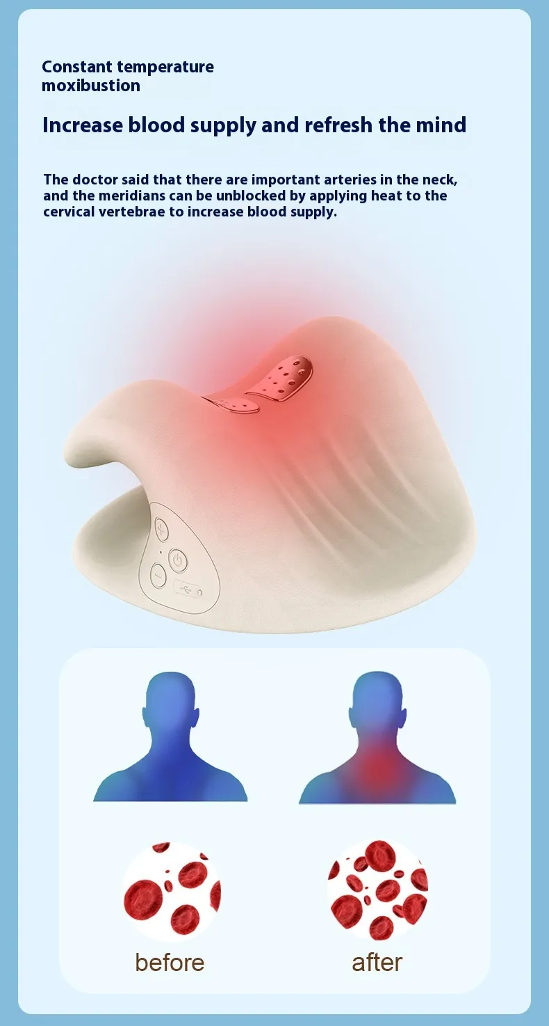 The pillow is equipped with a hot compress function, which helps soothe sore muscles and increase blood flow to the affected areas. The warm heat promotes muscle relaxation, alleviating tension and discomfort in the neck, shoulders, and upper back. Whether you're recovering from a long day, sitting at a desk, or simply need relief from muscle tightness, the heat function can help provide soothing comfort.