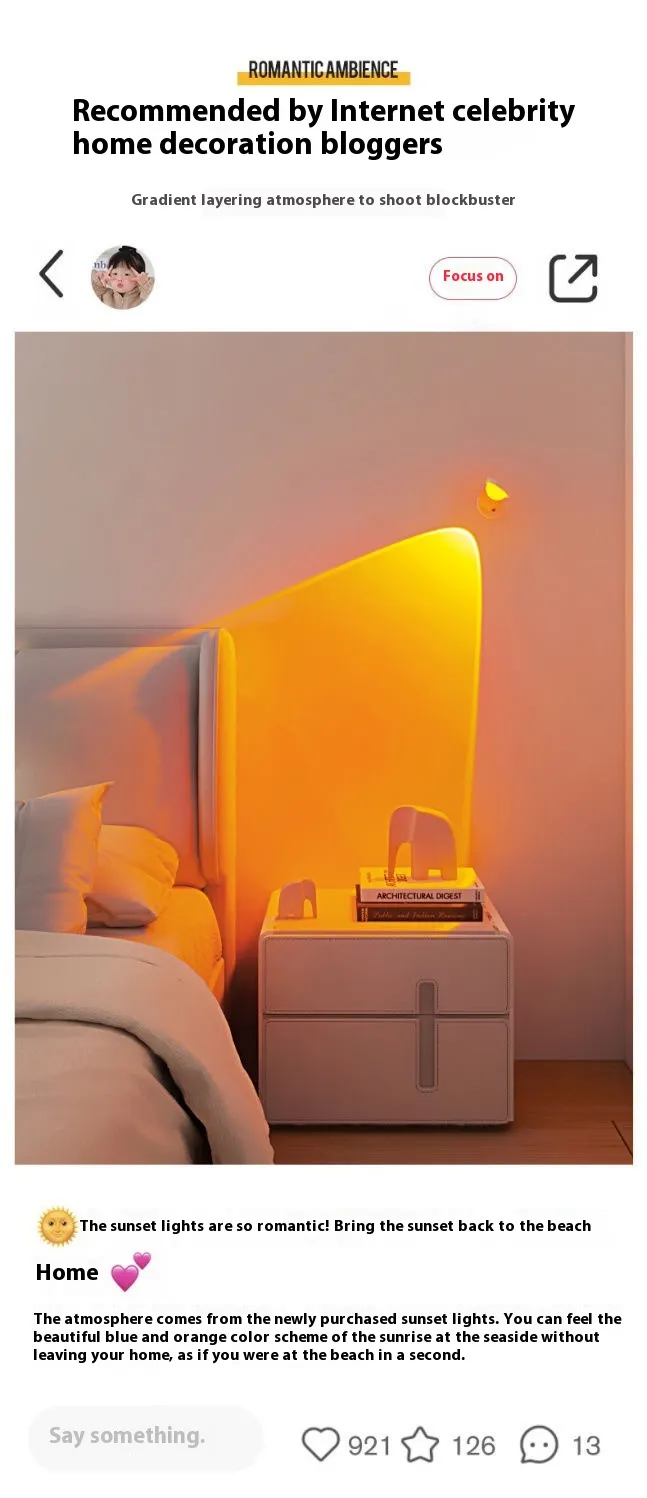 Instant Ambiance: The sunset red glow immediately transforms your room, adding warmth and relaxation to