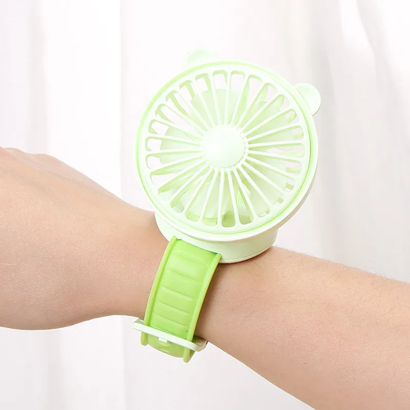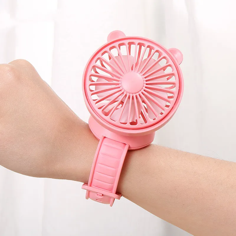 Rechargeable Watch Fan Student Desktop Bear Watch Fan Handheld Mini Fan