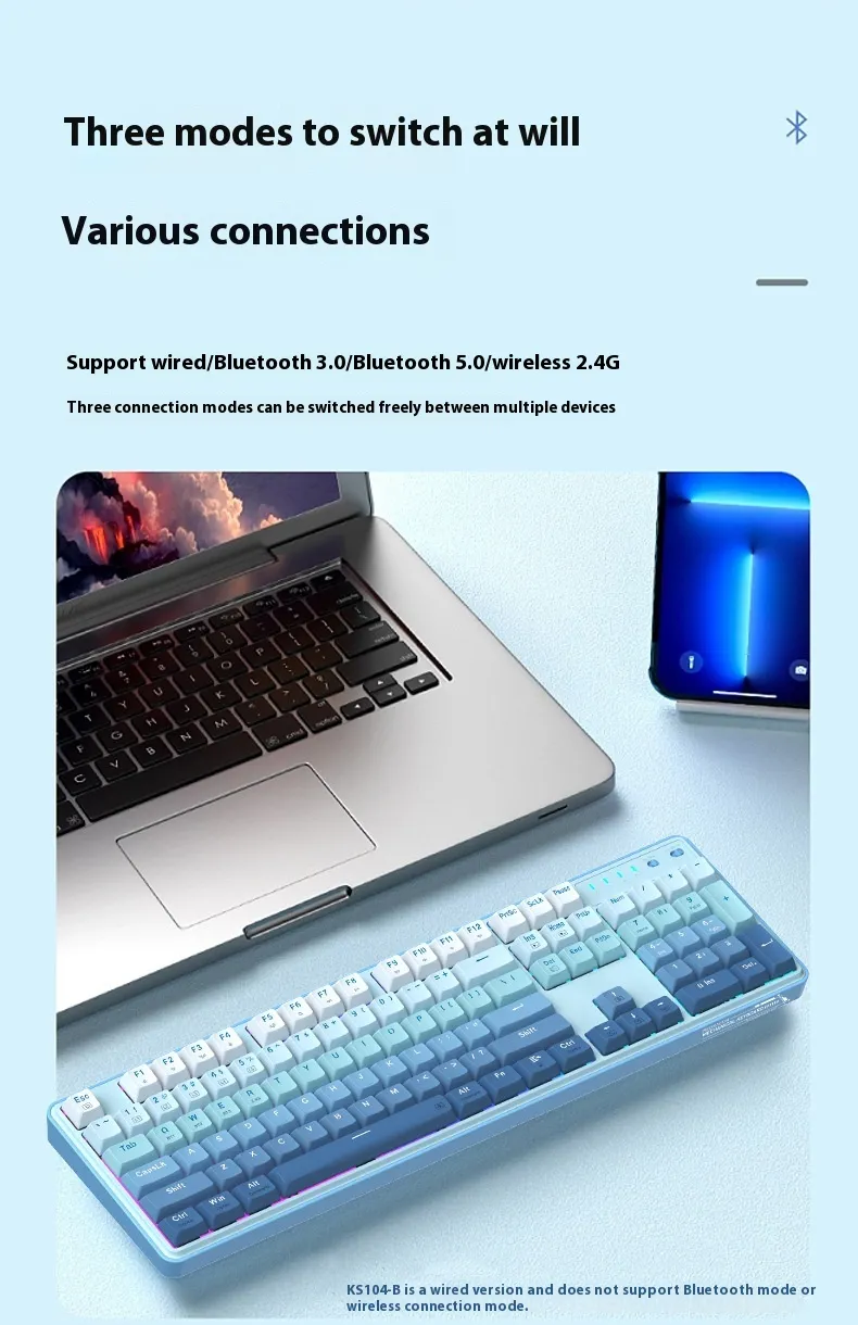 blue wired RGB green wood shaft, 104 keys Purple Yellow Blue wired RGB fire red shaft, 104 key black white Three mode RGB fire red axis, 104