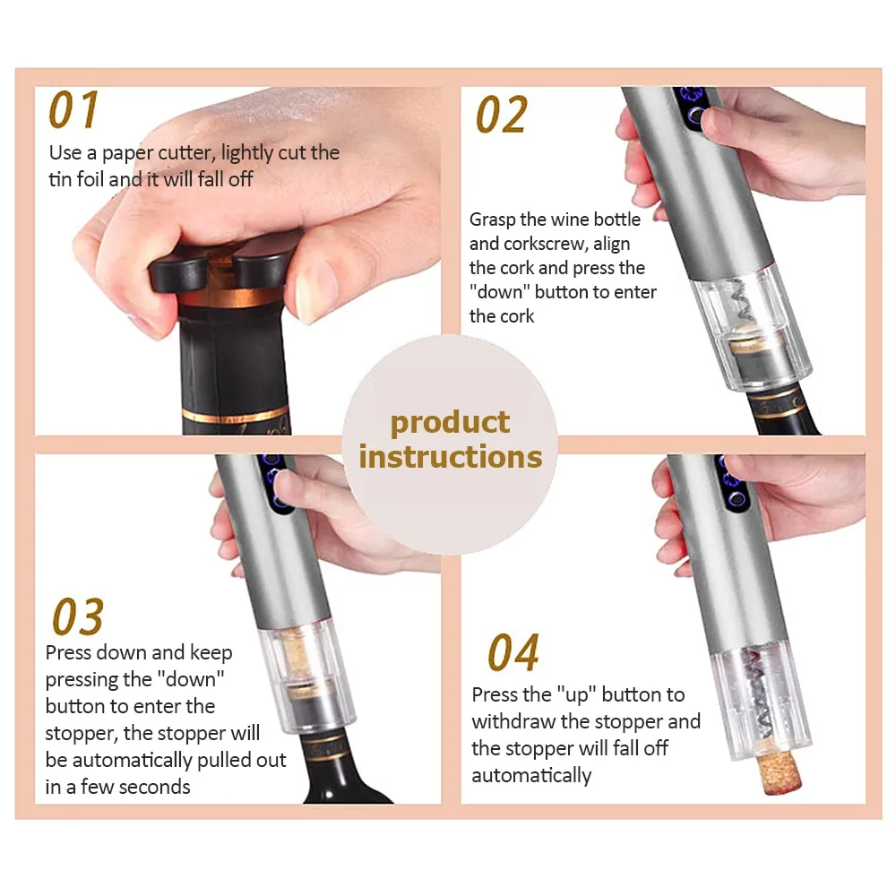 Electric Wine Opener: The highlight of this kit, the electric wine opener, takes the effort out of