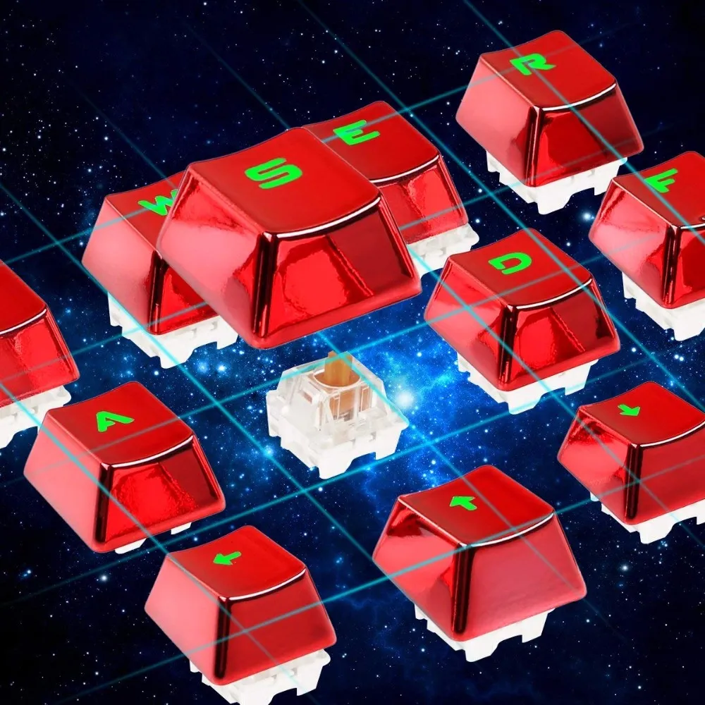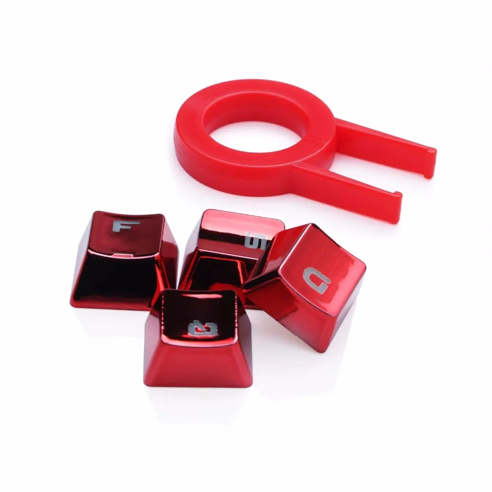 Crafted with high-quality PBT material, these keycaps feature double-shot injection moulding for legends that never fade and support brilliant backlighting. The metallic red electroplated finish gives your keyboard a bold, aggressive look that matches your battle-ready energy. Designed for the most-used gaming keys, this 12-key set includes essential keys like WASD, Arrow keys, and more.