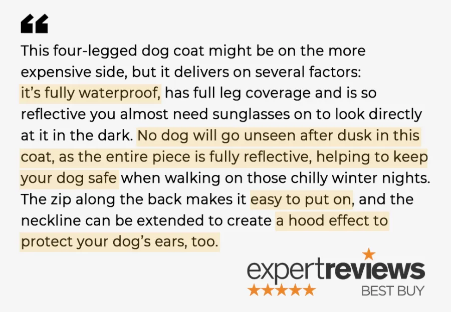 Full wrap design with skin-friendly and comfortable fabric. Tailored to fit properly and not tight. Let your dog move freely while protecting from wind and rain.