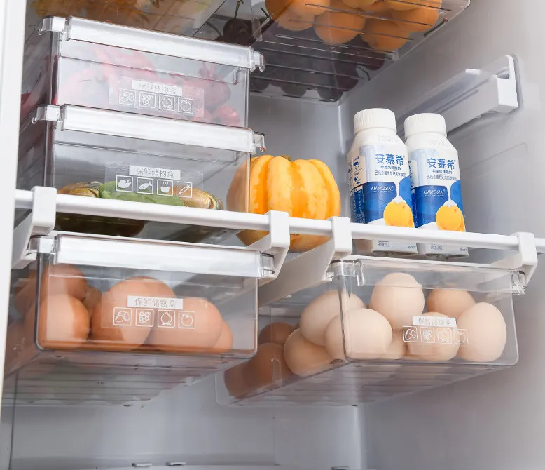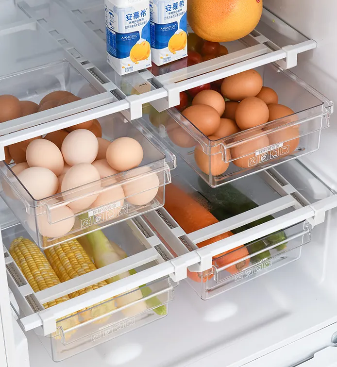 Refrigerator Organiser for Storage Kitchen-Storage Box Transparent Food Refrigerator Drawers Spacer Storage Basket