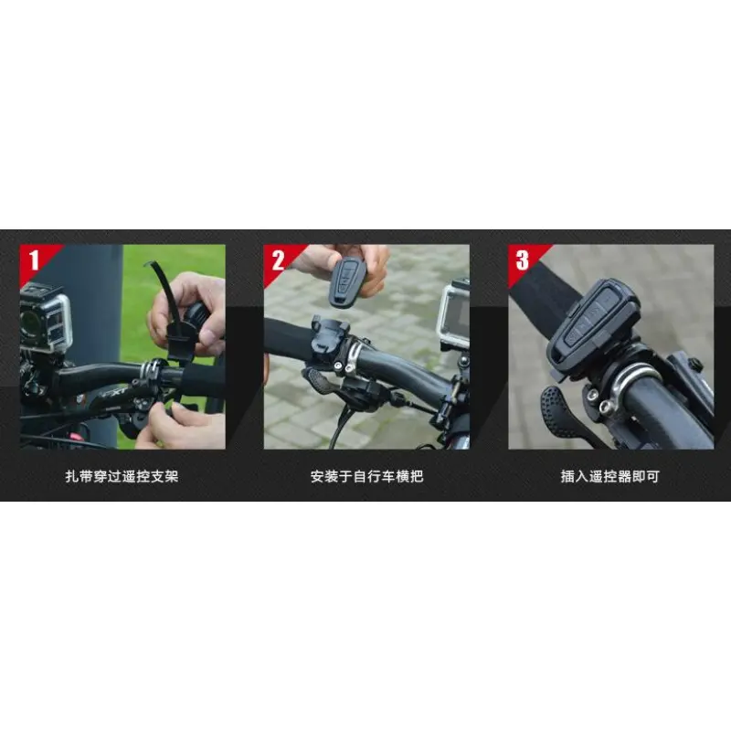 Accessories are: usb charging cable, remote control base, alarm, remote control, installation tools, straps, mounting screws, mounting