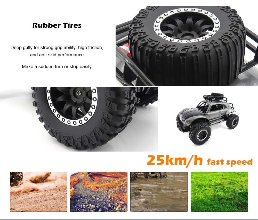 - Design: Beetle-inspired with off-road tires