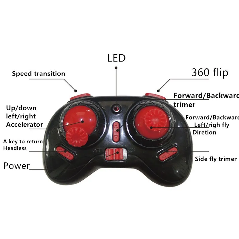 2. Functions: ascent/descent/turn left/turn right/forward/backward/left fly/right fly/large and small rudder amount (fast and slow