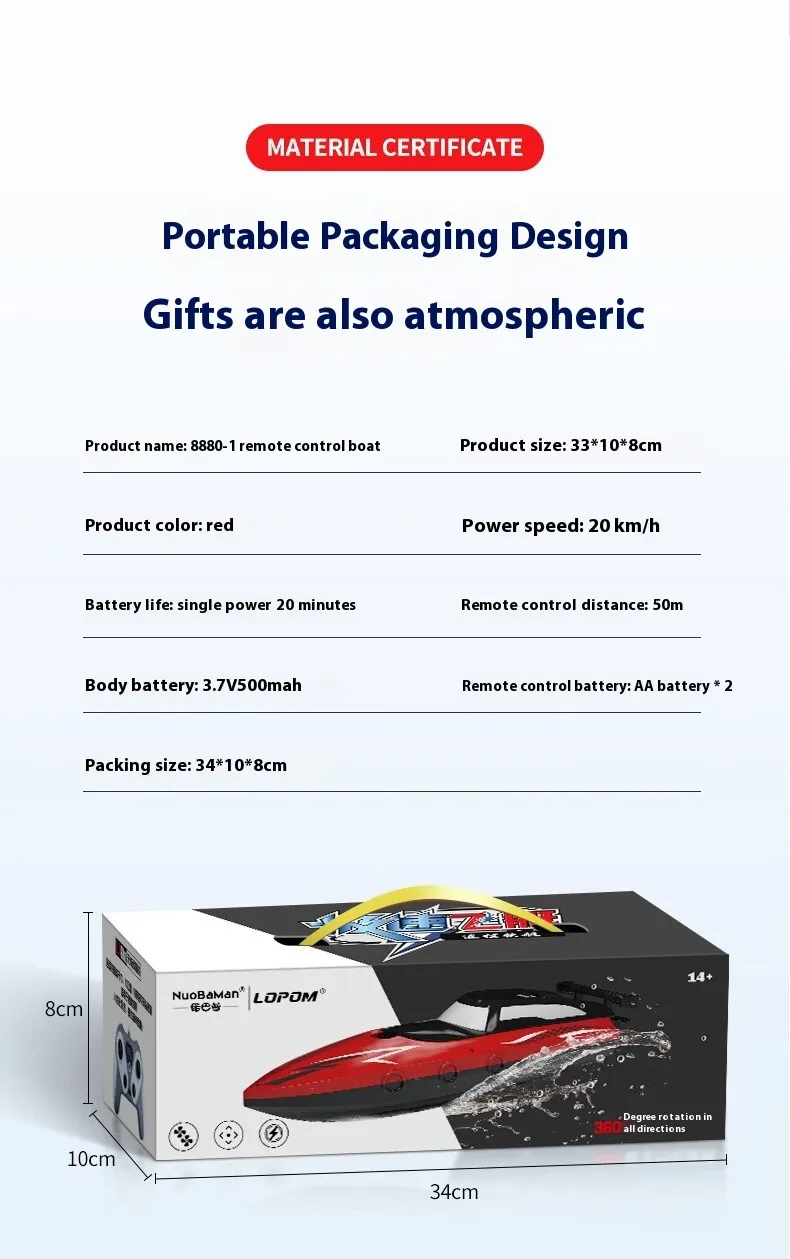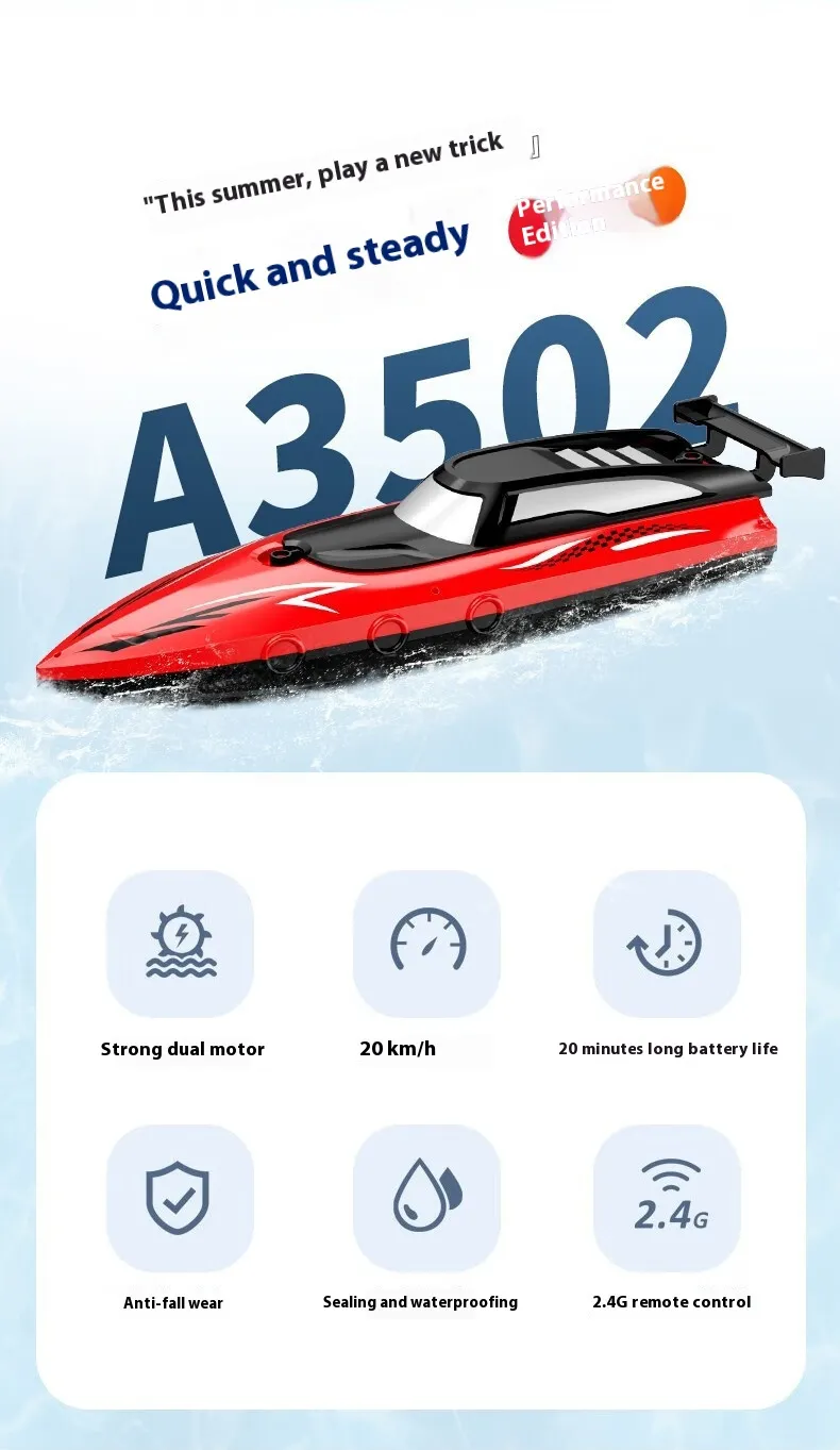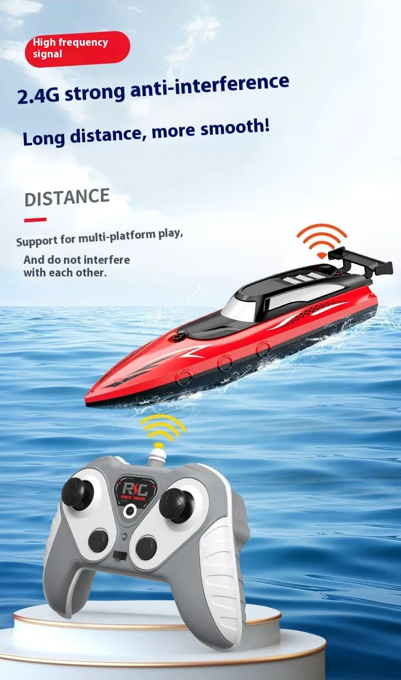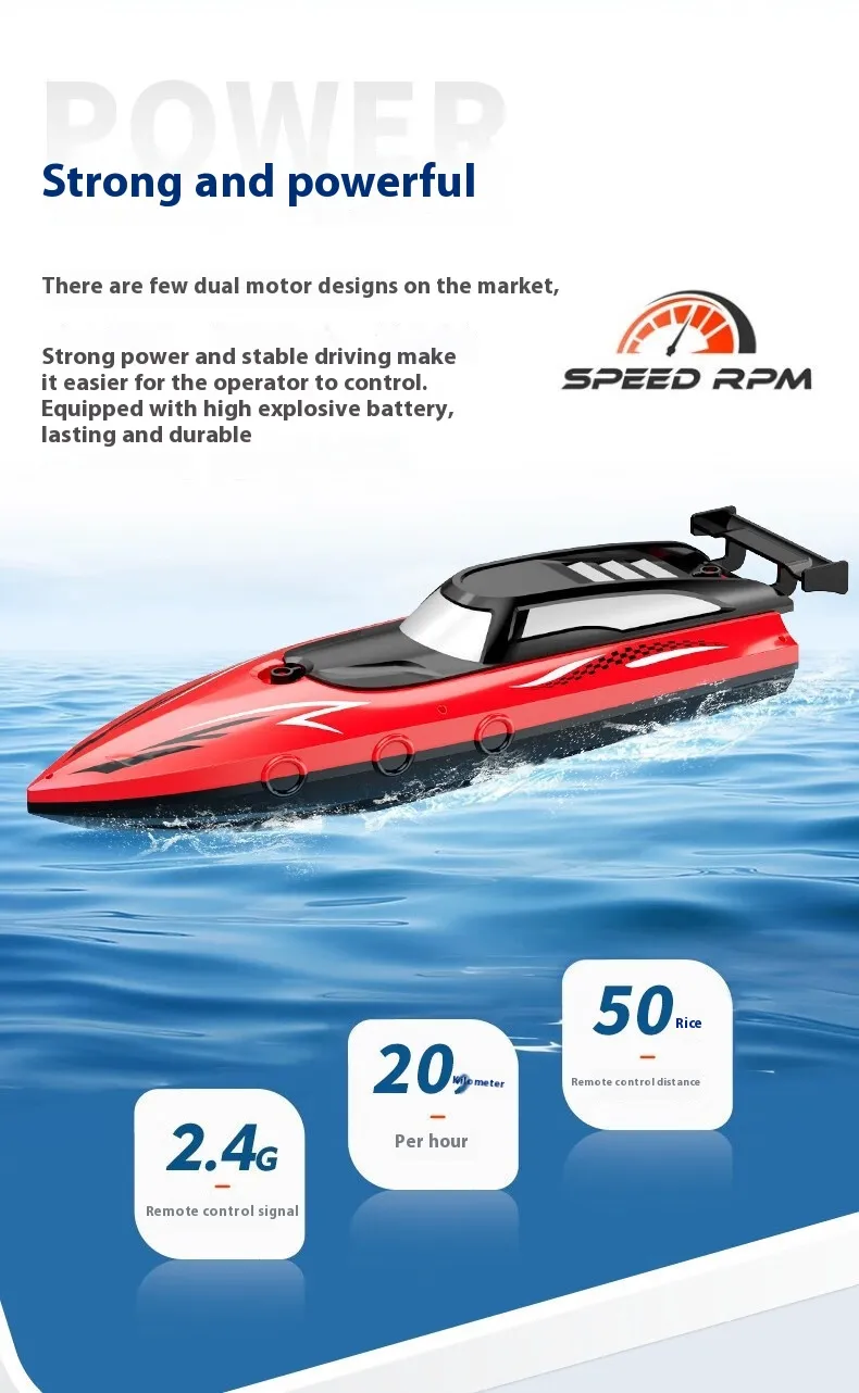 Durable and Waterproof: Built with high-quality, waterproof materials, this speedboat can handle different water conditions