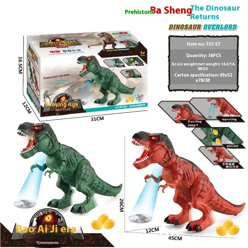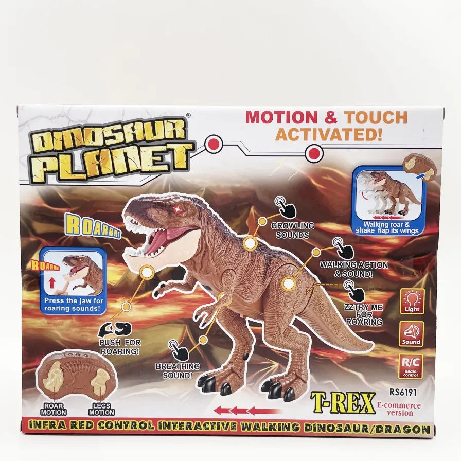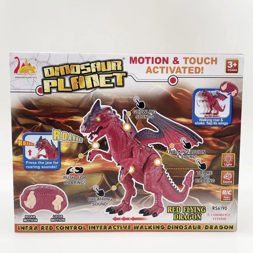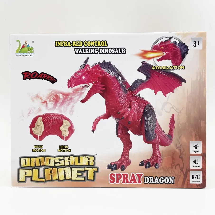 Color: remote spray fire dragon (spray, sound, light), remote spray ice dragon (spray, sound, light), Remote Touch Tyrannosaurus (touch,