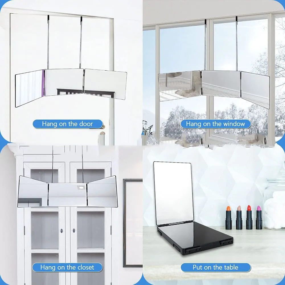 Invest in the Retractable Hanging Three-Sided Folding Mirror today and enjoy a clearer, more precise reflection for all your beauty needs!