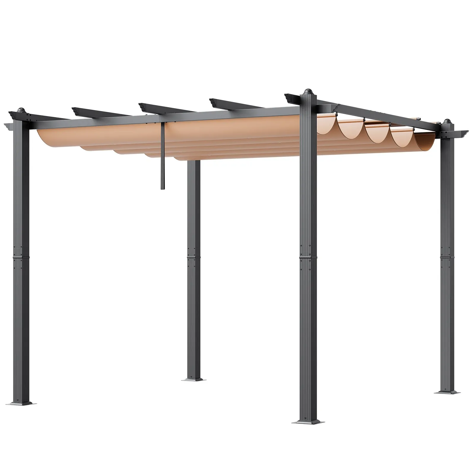 Adjustable Shade Canopy: Our pergola is equipped with an adjustable retractable canopy, featuring a built-in sliding track design. You
