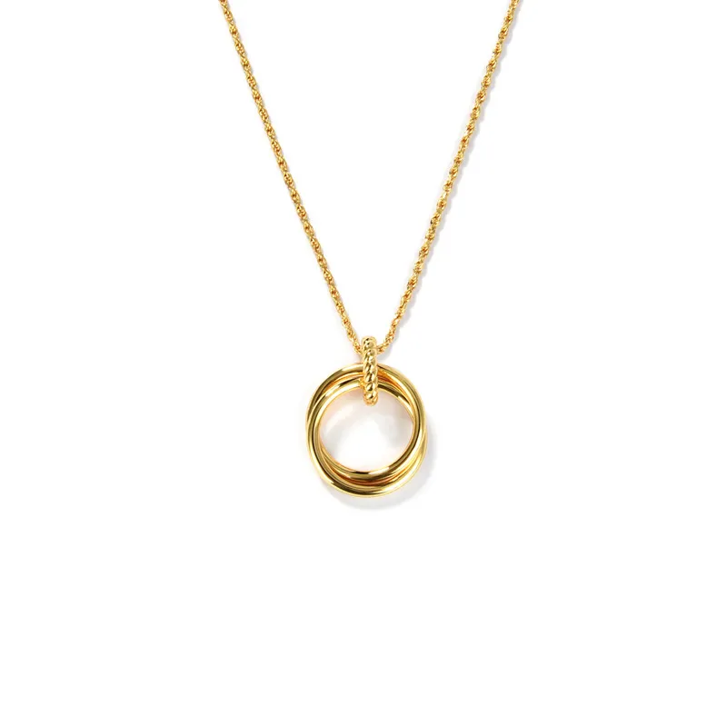 Retro Affordable Luxury Advanced Simple Style Design Double Ring Circle Necklace