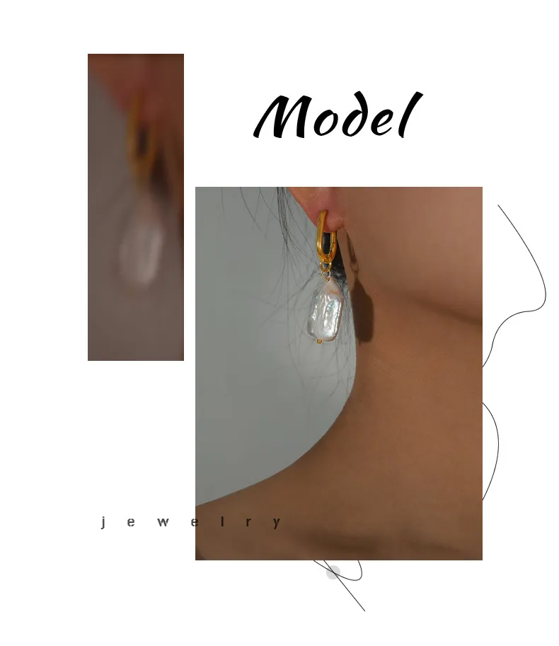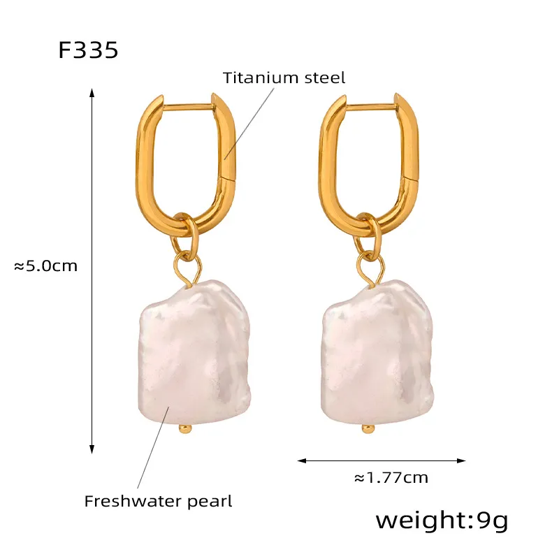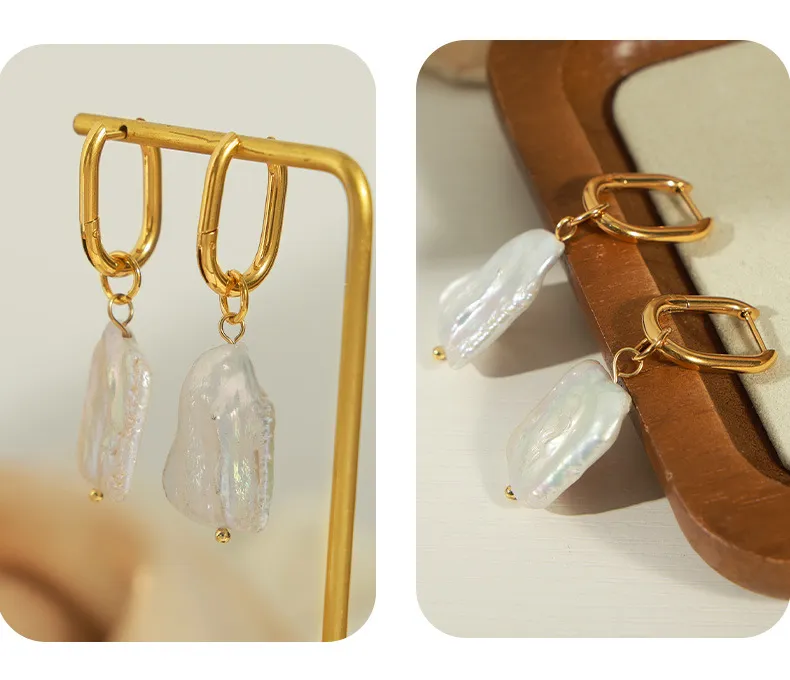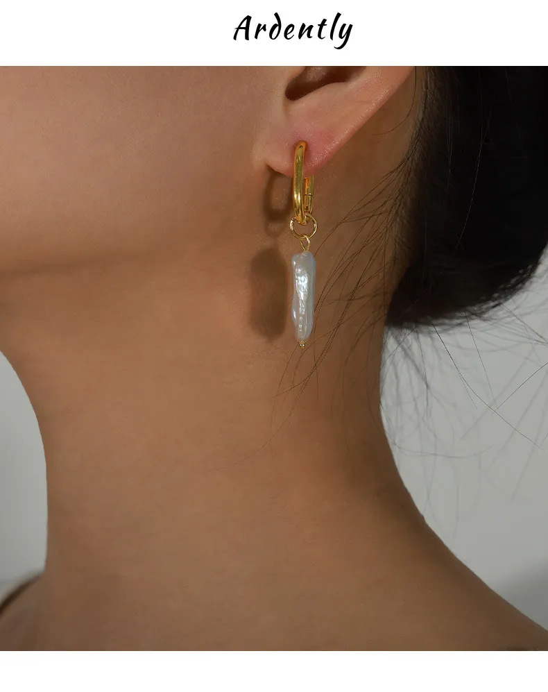 Retro Affordable Luxury Personality Titanium Steel Gold-plated Irregular Pearl Earrings
