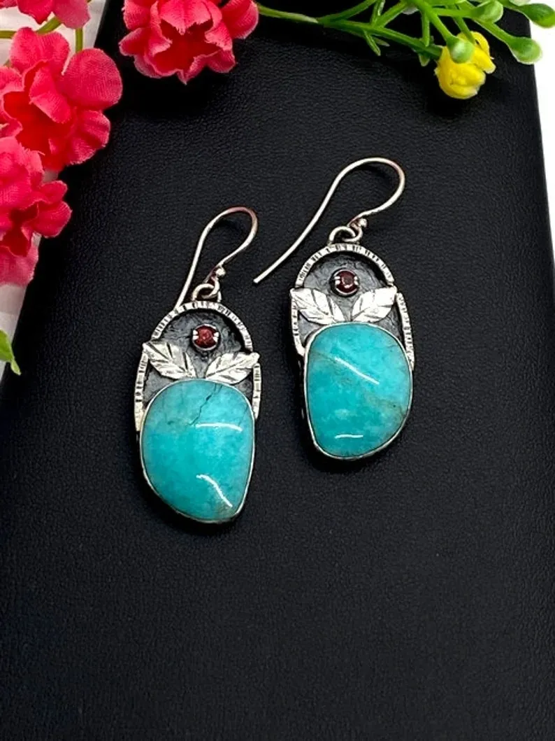 The artistic fusion of feathers, leaves, and turquoise gives these earrings a unique, vintage-inspired feel that is both earthy and elegant. Whether you’re looking to add a statement accessory to your everyday wear or elevate your evening outfit, these earrings effortlessly blend nature’s beauty with retro charm.