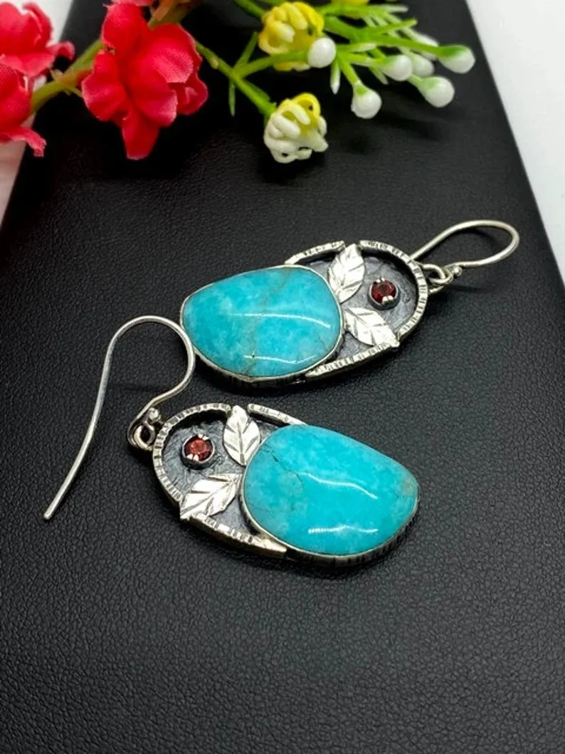 Retro Creative Feather Leaf Turquoise Earrings – A Fusion of Vintage Elegance and Nature-Inspired Beauty