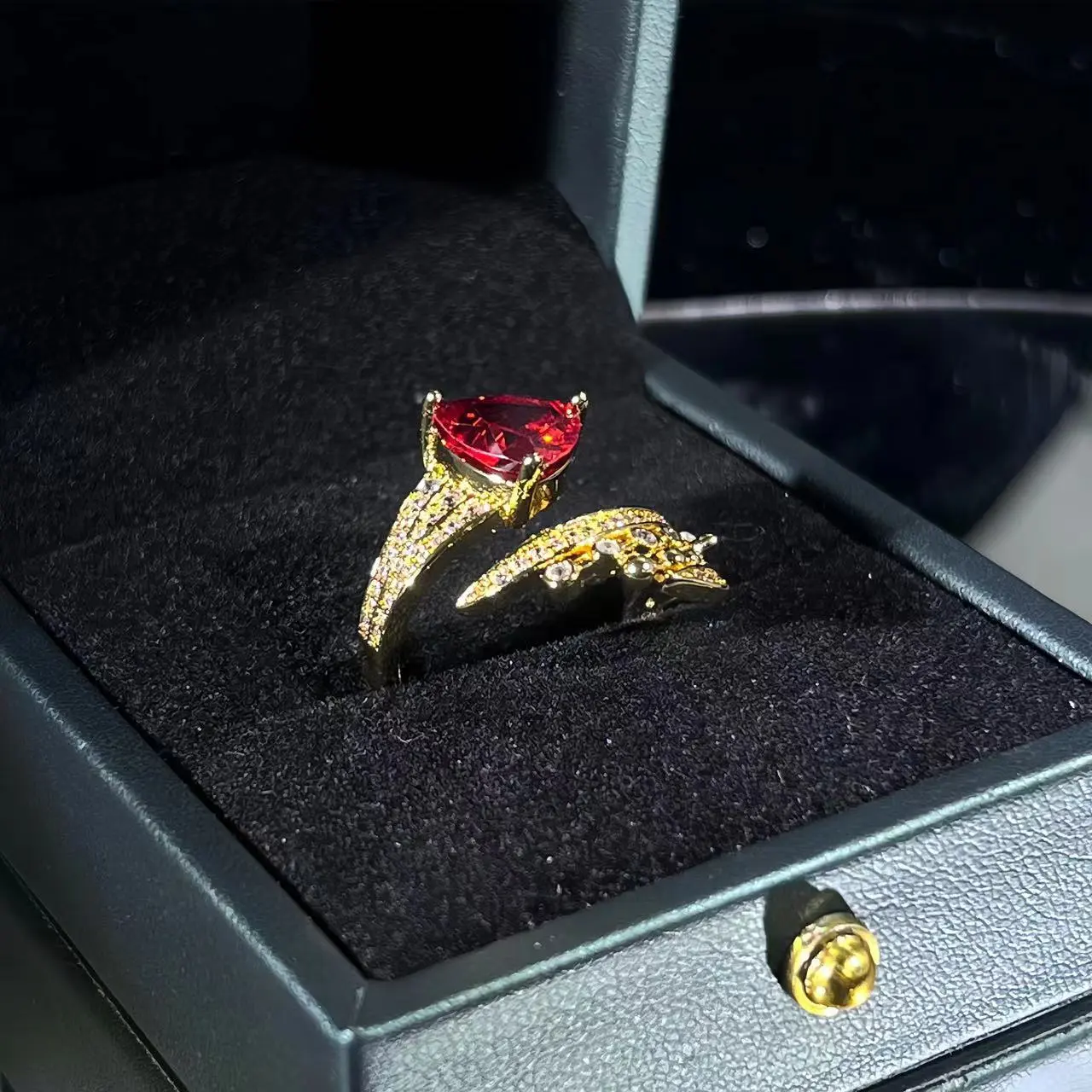 Retro Diamonds Red Opening Gold Ring