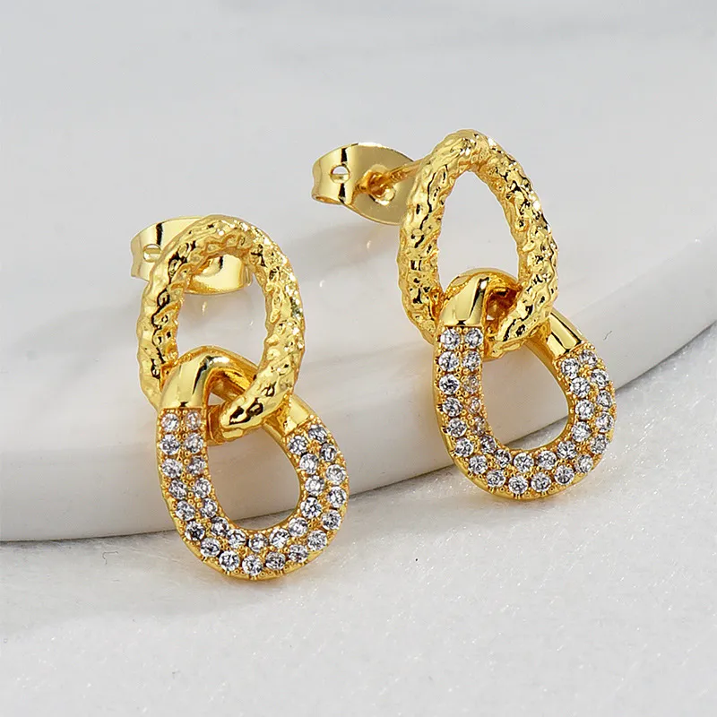 Crafted with high-quality materials, these earrings are designed for comfort and durability. The lightweight build makes them perfect for all-day wear, while the micro-inlaid zirconium offers a refined shine that catches the light with every movement. The double ring structure adds a sense of dimension and depth to the design, creating a statement piece that remains easy to match with your favorite outfits, whether for everyday wear or a special event.