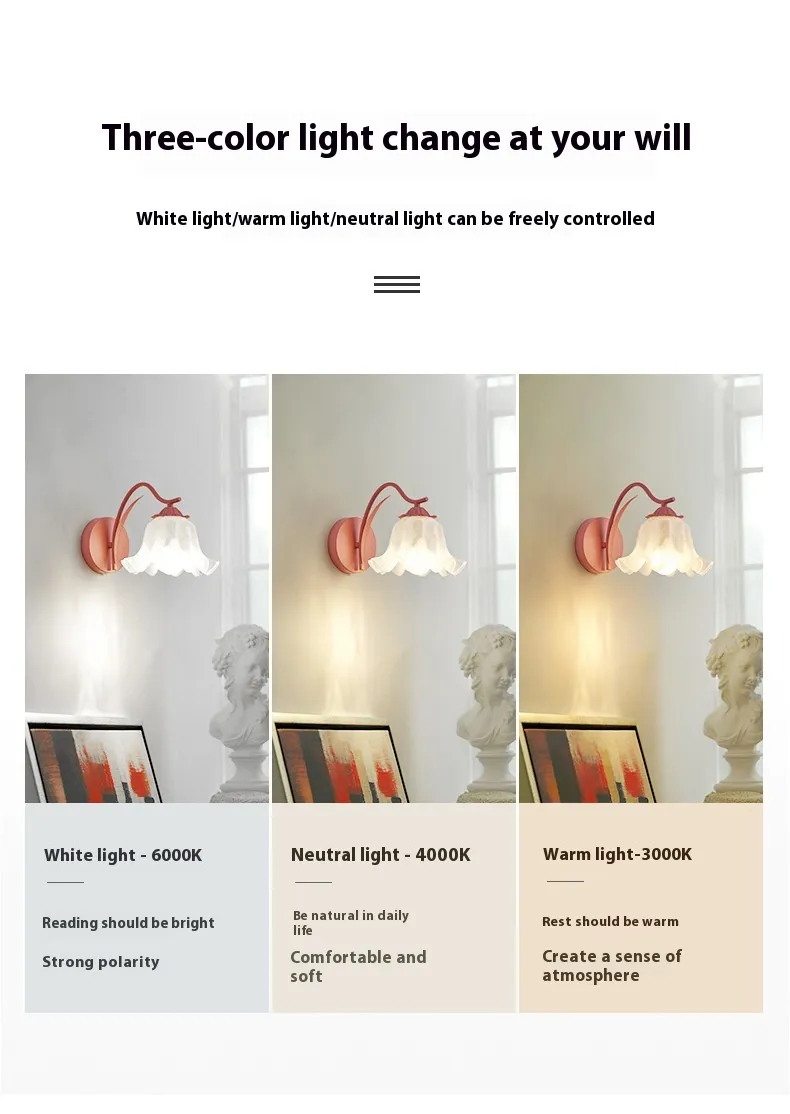 Retro Idyllic Girl Bed Head Wall Lamp Flower Wall Light Bulb