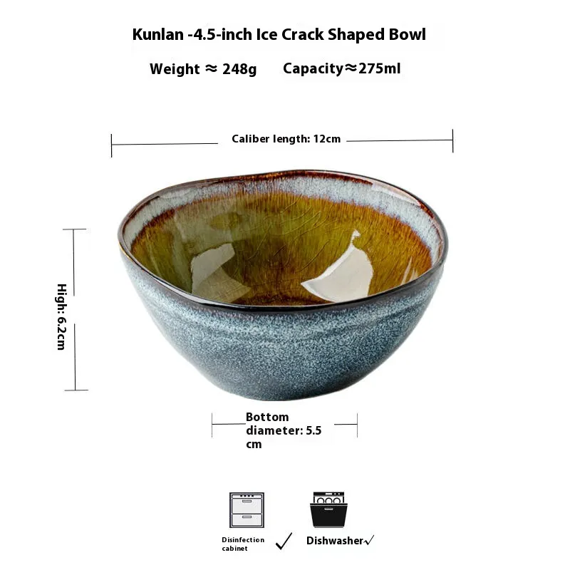 Popular elements:Â bowl Kunlan-4.5 inches ice crack abnormal-shape Bowl
