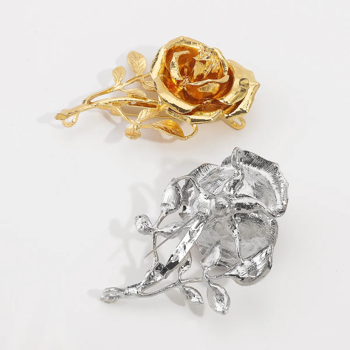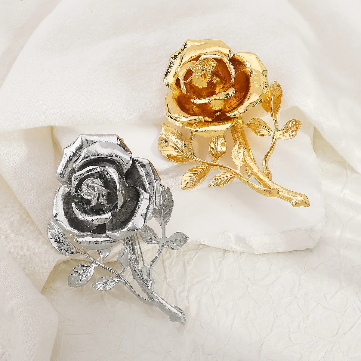 Add Classic Elegance and Charm with the Retro Metal Three-Dimensional Rose Flower Brooch