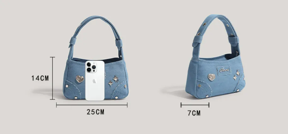 Retro Minority Design Small Handbag Summer New Metal XINGX Denim
