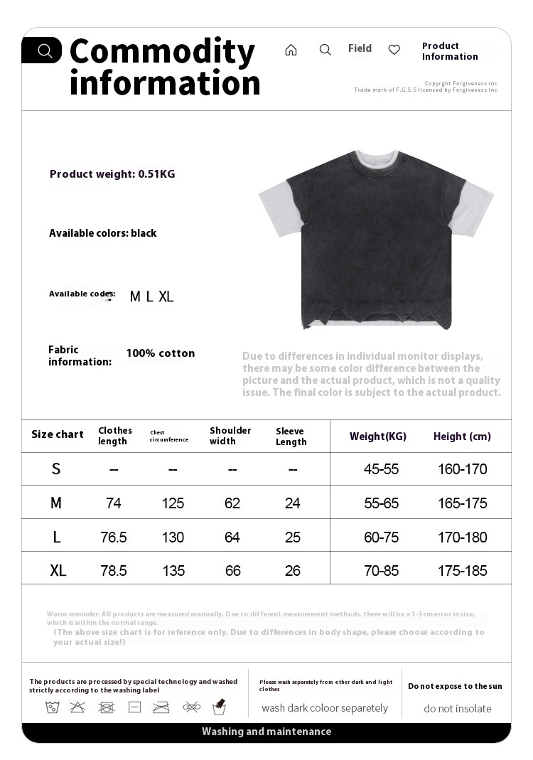 Introducing the Retro Patchwork Double-Layer Color Match T-Shirt, a perfect blend of edgy style and vintage charm. This unique t-shirt is designed for those who appreciate a distinctive and bold look.