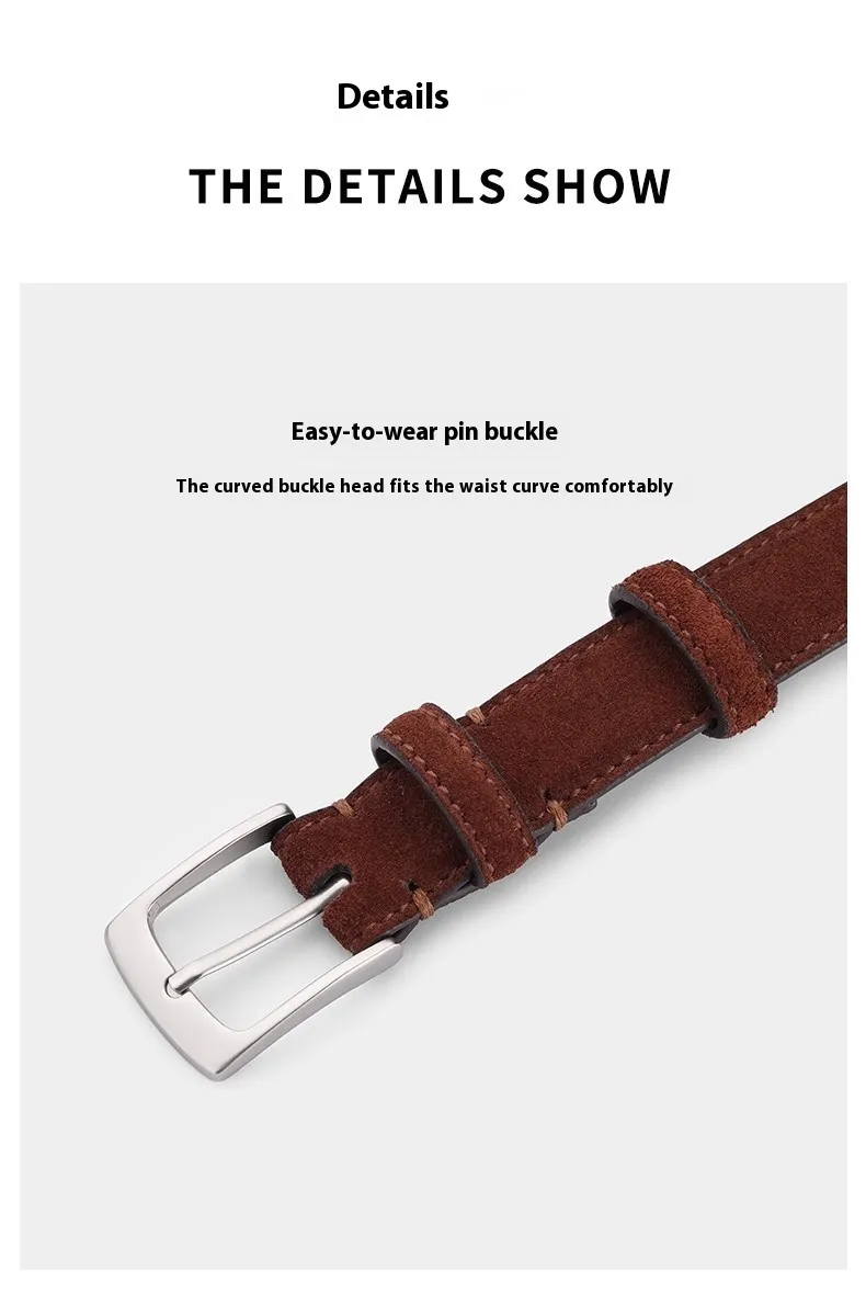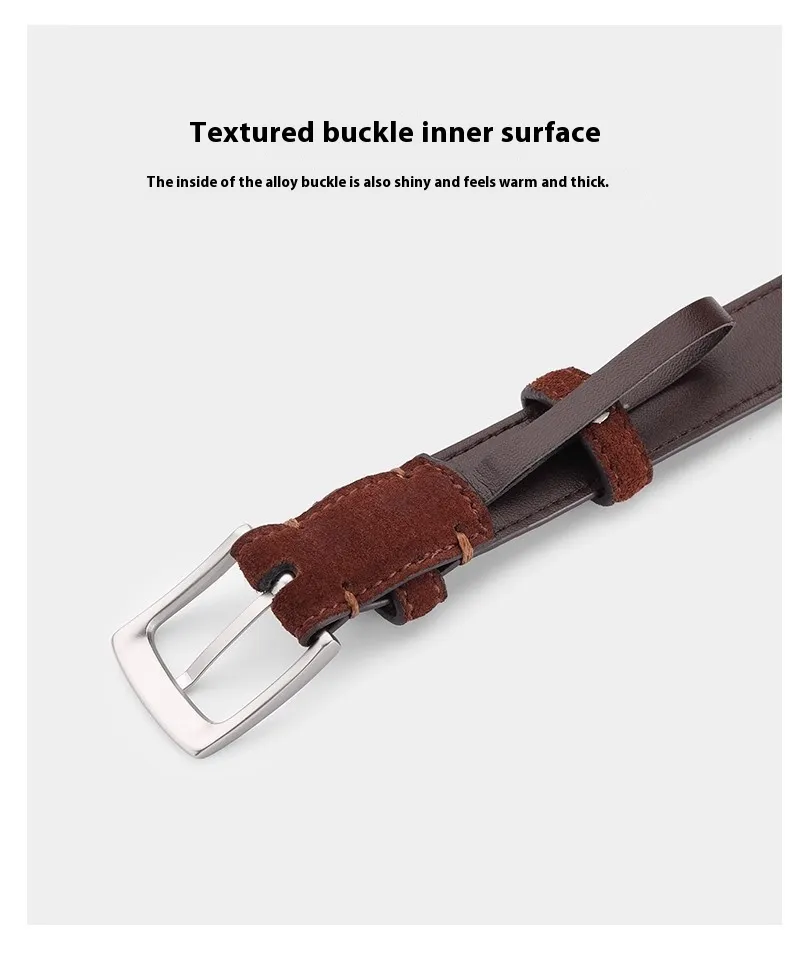 Upgrade your accessory collection with this classic, rugged, and refined Retro Pin Buckle Suede Cowhide Belt.
