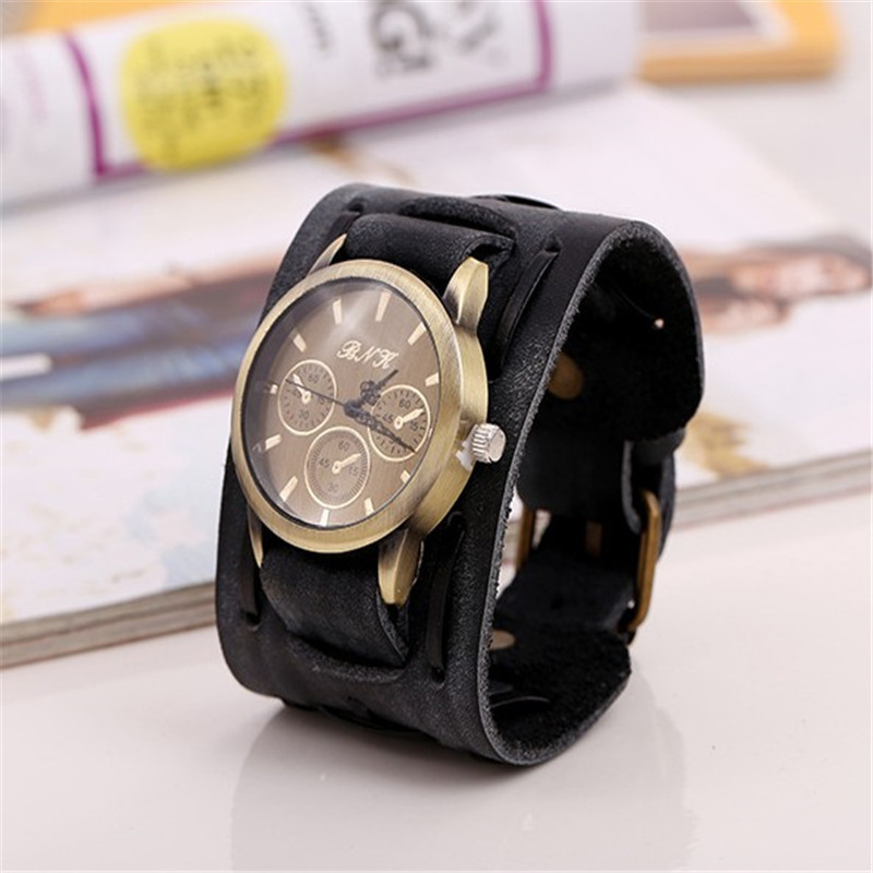 Make a statement with our Retro Punk Cowhide Men's Wrist Watches. Combining vintage style with modern functionality, these watches are perfect for adding a touch of boldness and sophistication to any outfit.