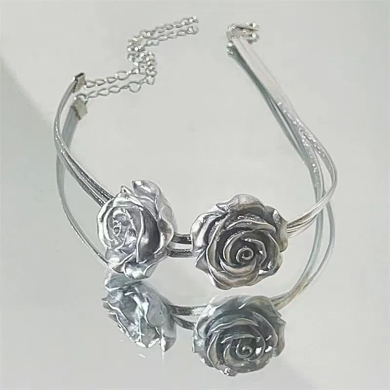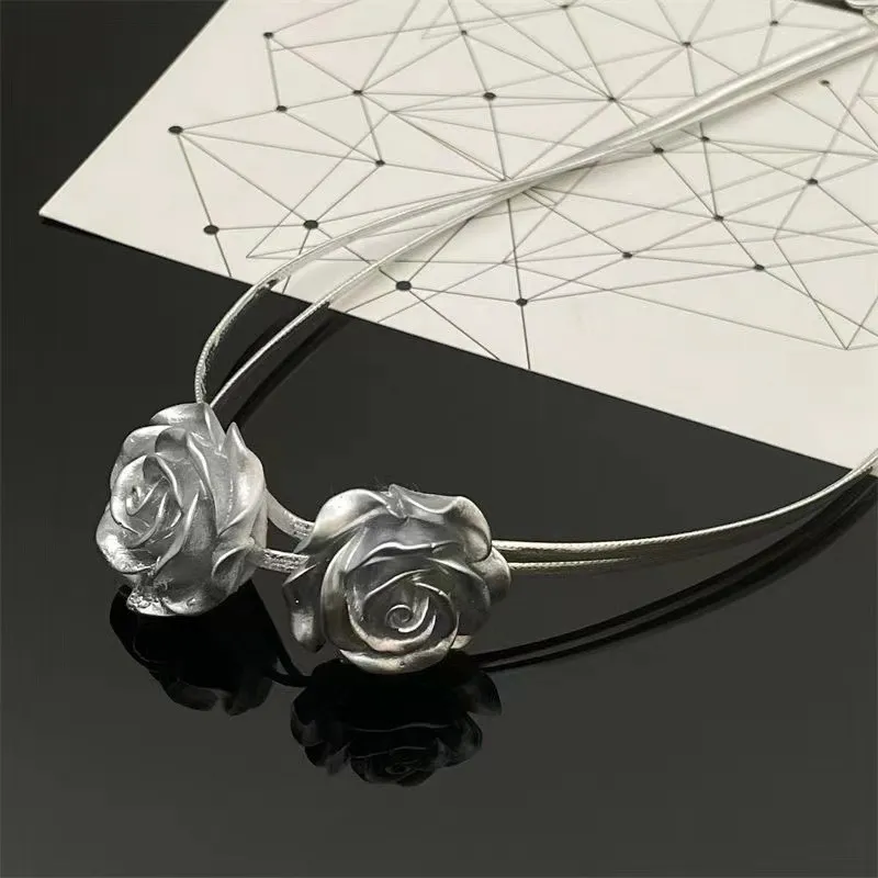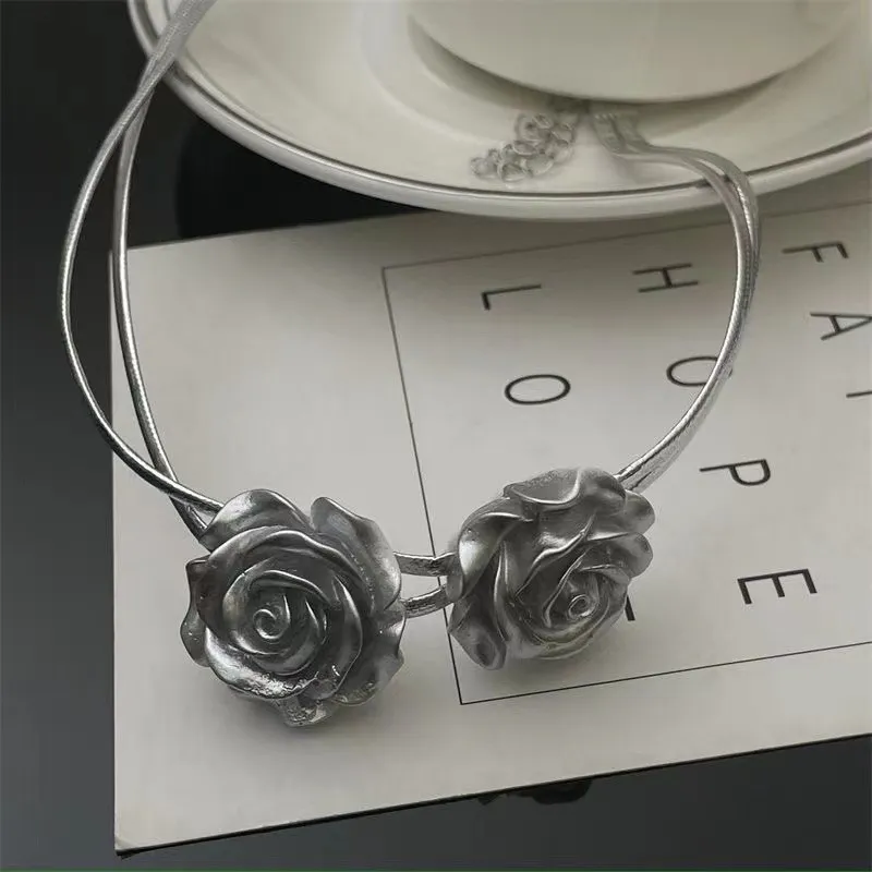 Retro Silver Rose Clavicle Chain Female Personality