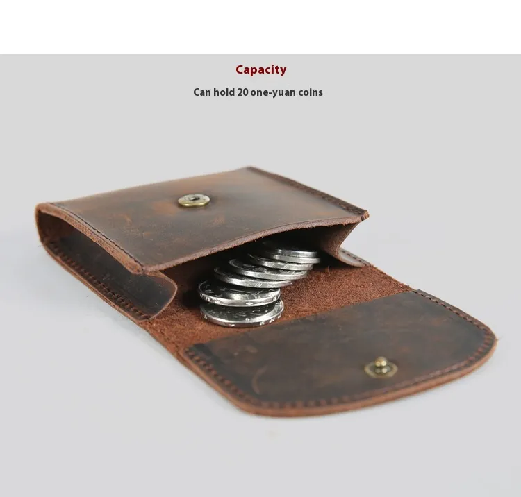 Despite its mini size, our Retro Simple Cowhide Coin Change Mini Wallet features ample space for coins, folded notes, and small essentials. The secure closure keeps your belongings safe, making it a reliable companion for everyday use.
