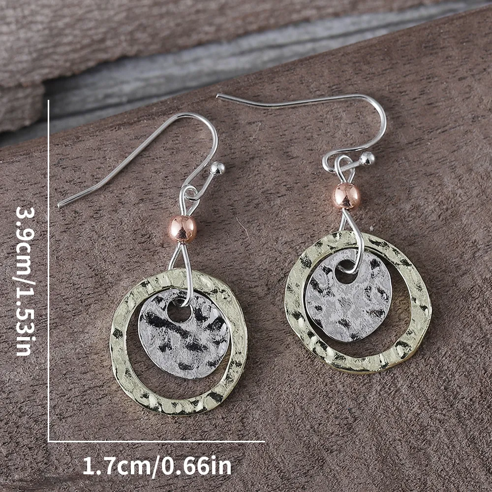 Retro Simplicity Coin Ring Overlapping Two-tone Earrings